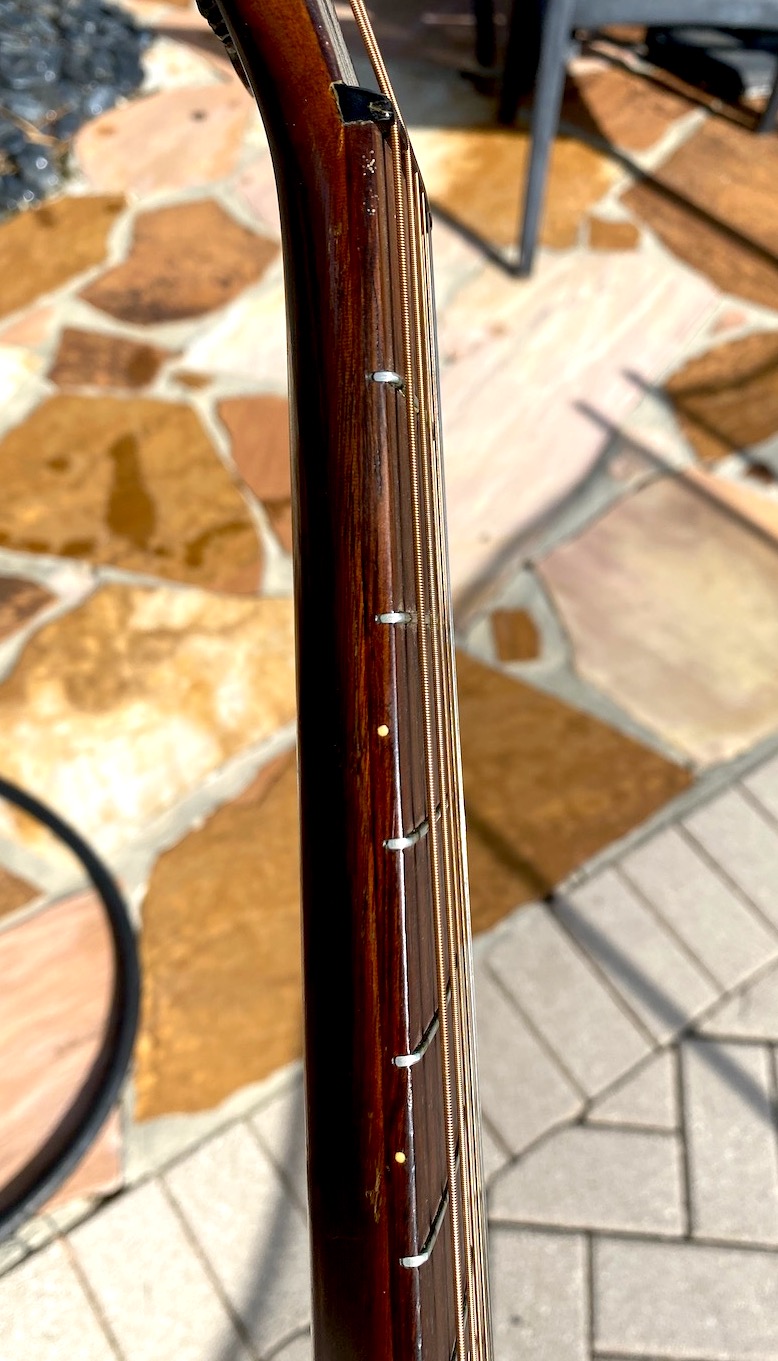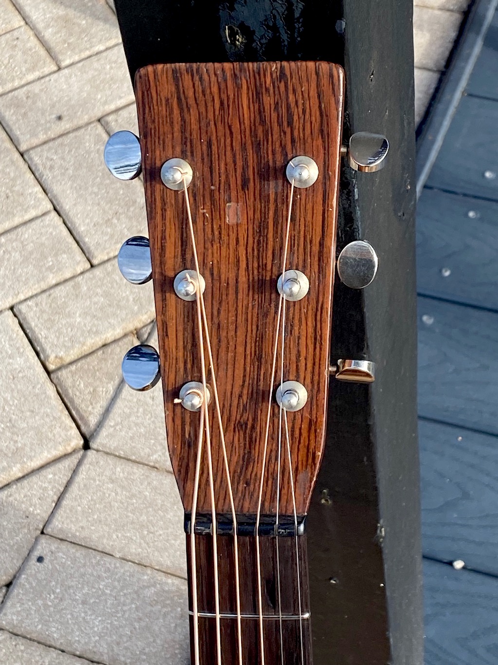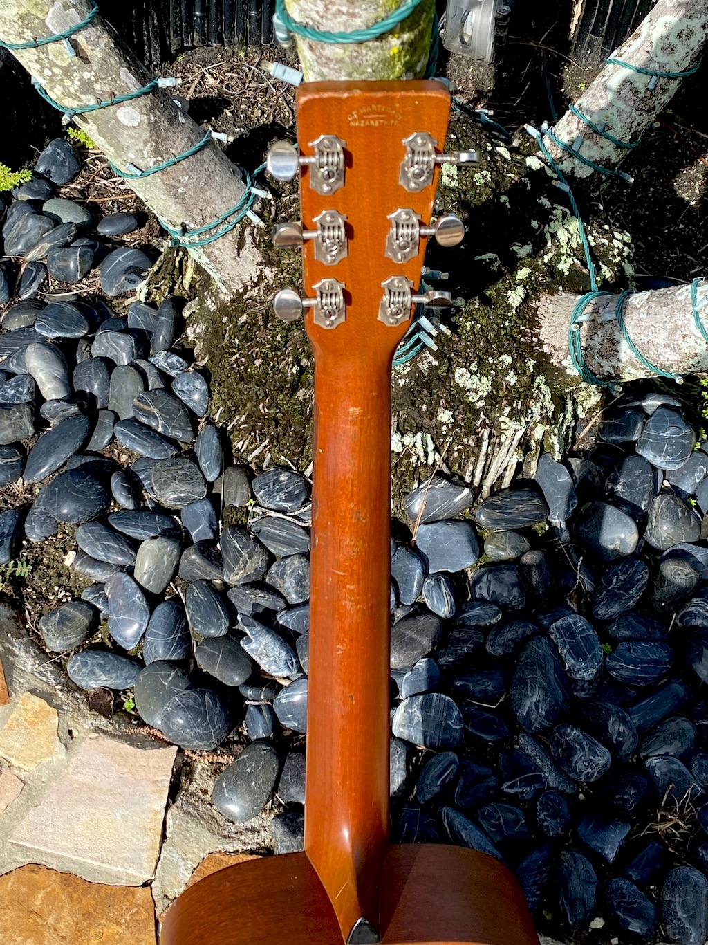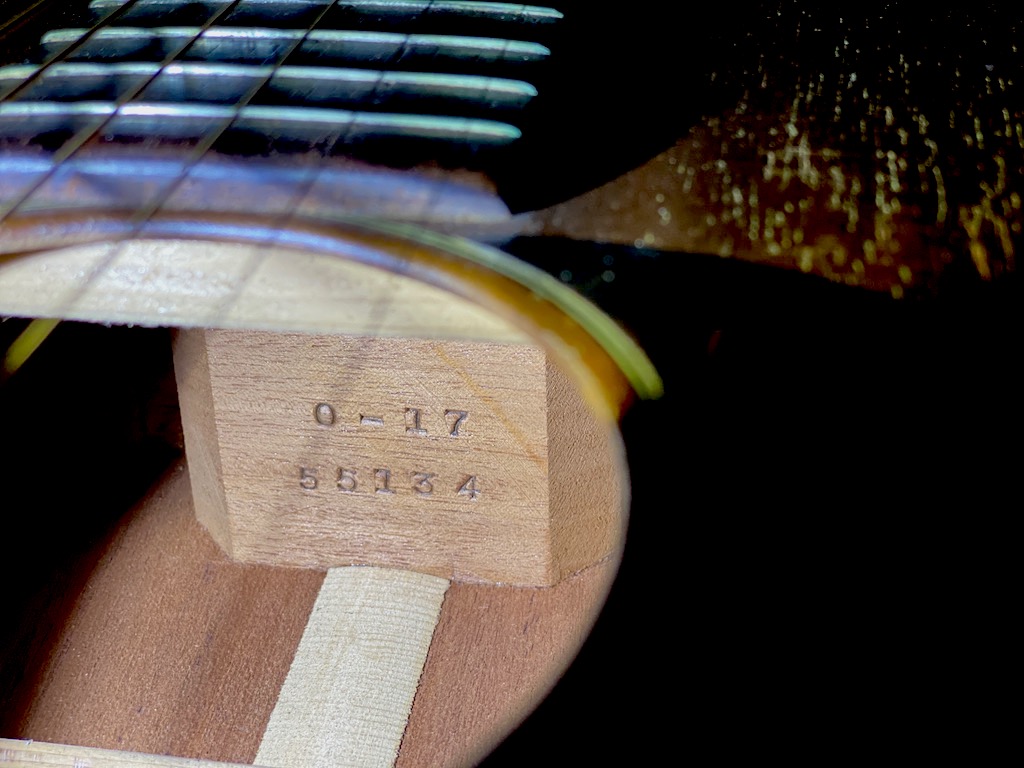 This is a great example of what Martin specialized in…making such fabulous sounding small bodied models of all types. This is a very special 2nd year of production 14 fret 0-17 made in 1934 in all original clean shape. Its Mahogany top is quite clean that’s been played a bit w/no repairs. It has perfect tone & playability. It still has all of its original scalloped braces. It’s Mahogany back & sides are absolutely crack free. Its 1 piece soft V shape neck feels very comfy, plays great & has a perfect neck angle. It sports a beautiful Brazilian Rosewood headstock veneer w/no Martin logo of any type just stamped Martin on its back side. Its original Grover open back nickel plated tuners w/metal buttons are super clean & hold tune pretty well. Its Brazilian Rosewood fingerboard & bridge are still quite nice. Amazingly she still retains her original railroad tie Frets. If you ever wanted a killer sounding 82 year old perfect playing 0 size Martin…this is it. She’s excellent overall, comes complete w/a “Greig Hutton Registry” report & comes w/a generic case.