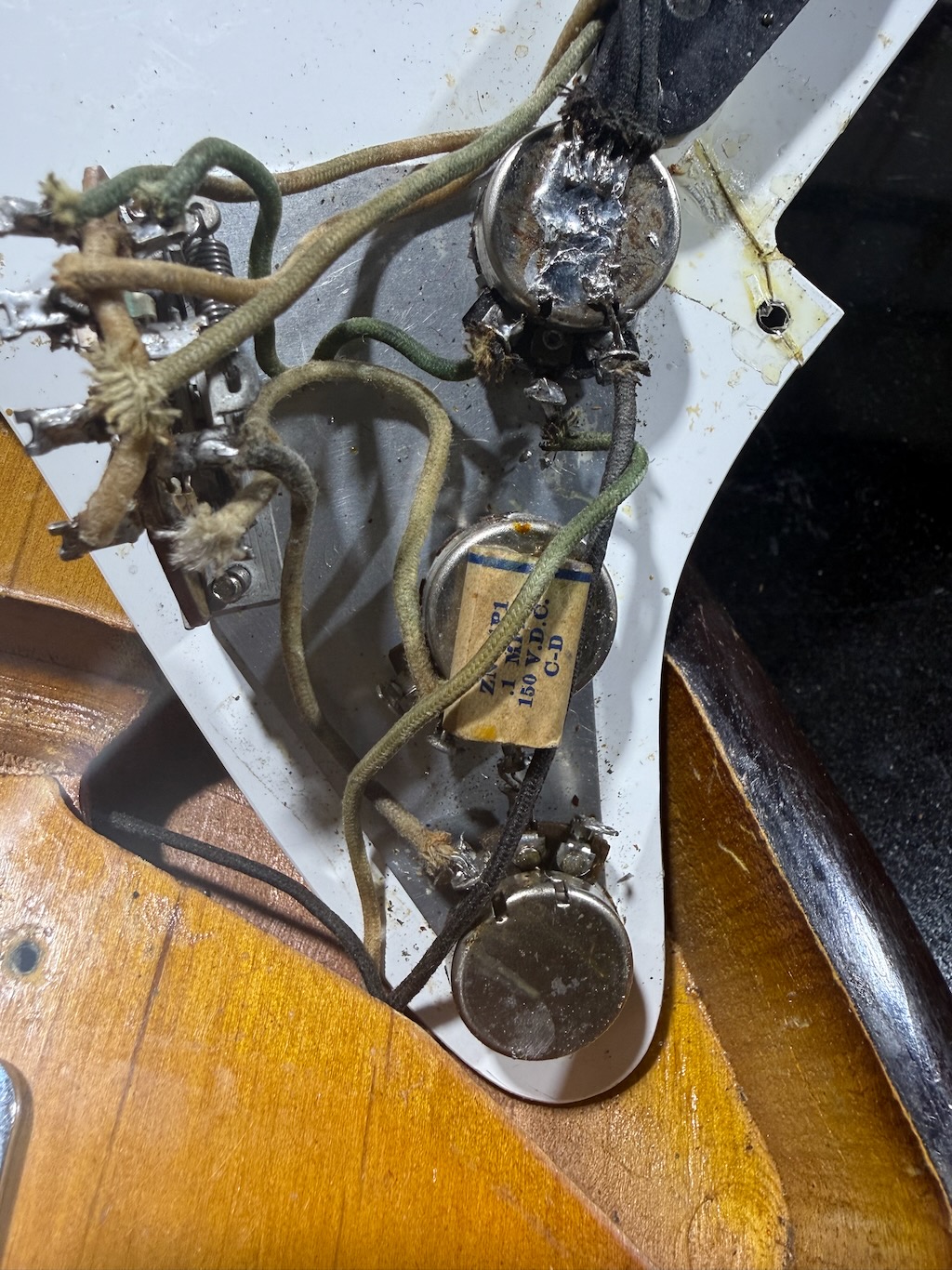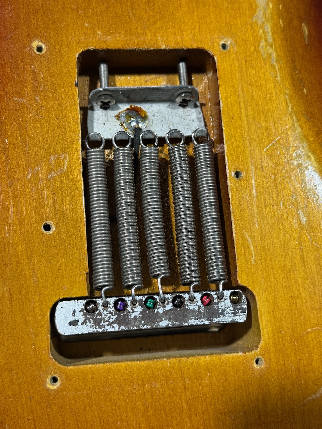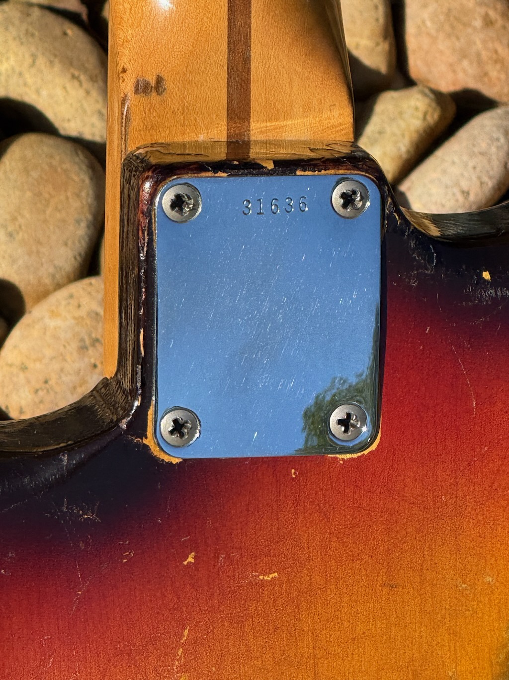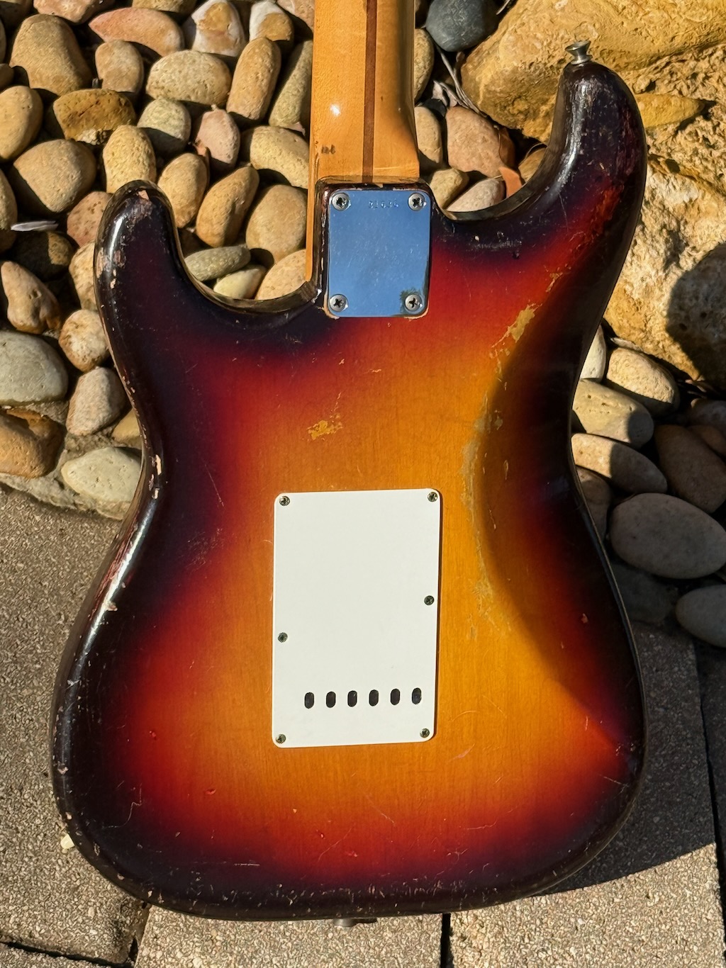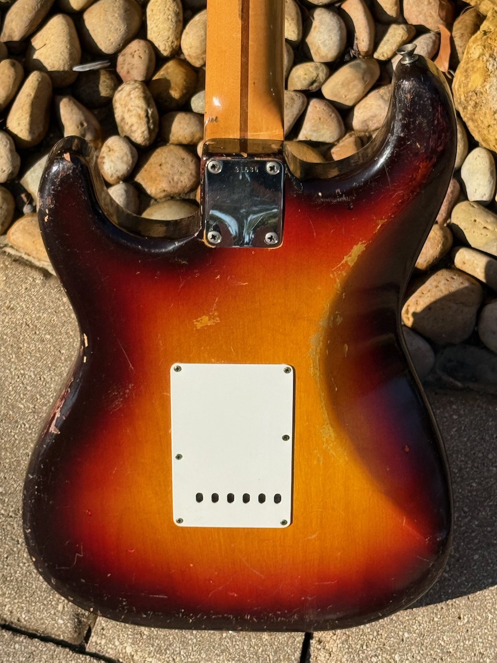 This is the ultimate all original & perhaps the very last production run Pre-CBS Stratocaster w/a Maple neck & all early ’59 features in all original condition. It has its original slightly faded 3-Tone Brown’burst finish over a very lightweight Alder body pencil dated 11/58 & weighing in at a featherweight 7 lbs. 1 oz. These early 59’s were the last made Maple Necks, this one being pencil dated 3/59 & are quite wide & have a flat/thin feel like no others. It’s sporting a very low serial # (31XXX) stamped on its 4-bolt neck plate, its original single layer pickgard has 1 crackle in it. Its 3 Pickups are absolutely fantastic w/that quintessential Strat tone !, Its pot date codes are from the 39th week of 1958, Its so cool from its nickel tuners to its pat. pend. 6 saddle bridge, its all original other than a pro-refret by Gruhn’s. She has a gorgeous patina for a 65 year old original, it plays & feels incredible, other than having some major play time, she’s still rather Excellent. 1 of the coolest & most desirable examples on Earth, she comes complete w/its original Tweed case.