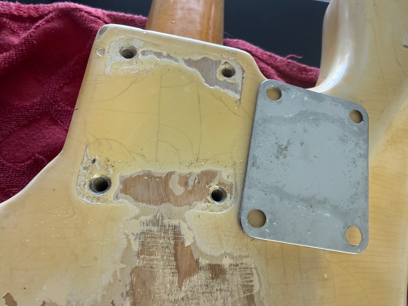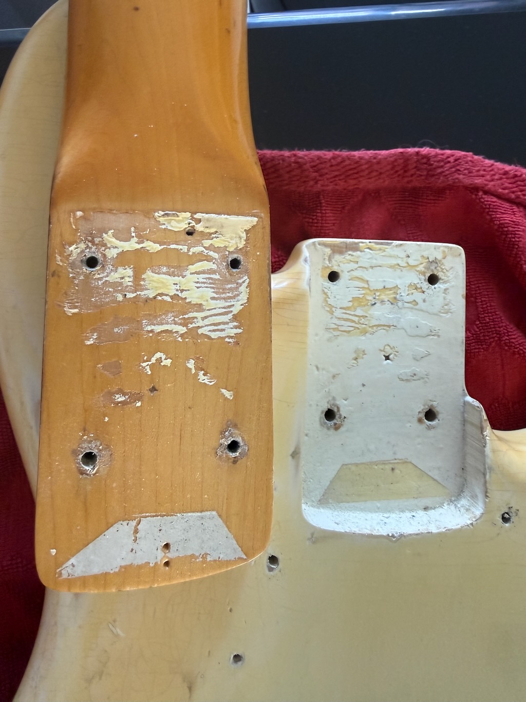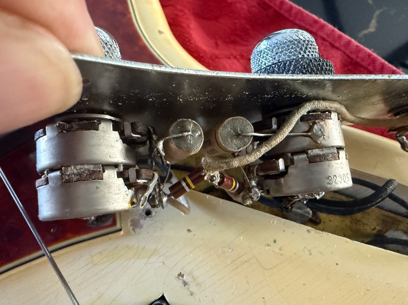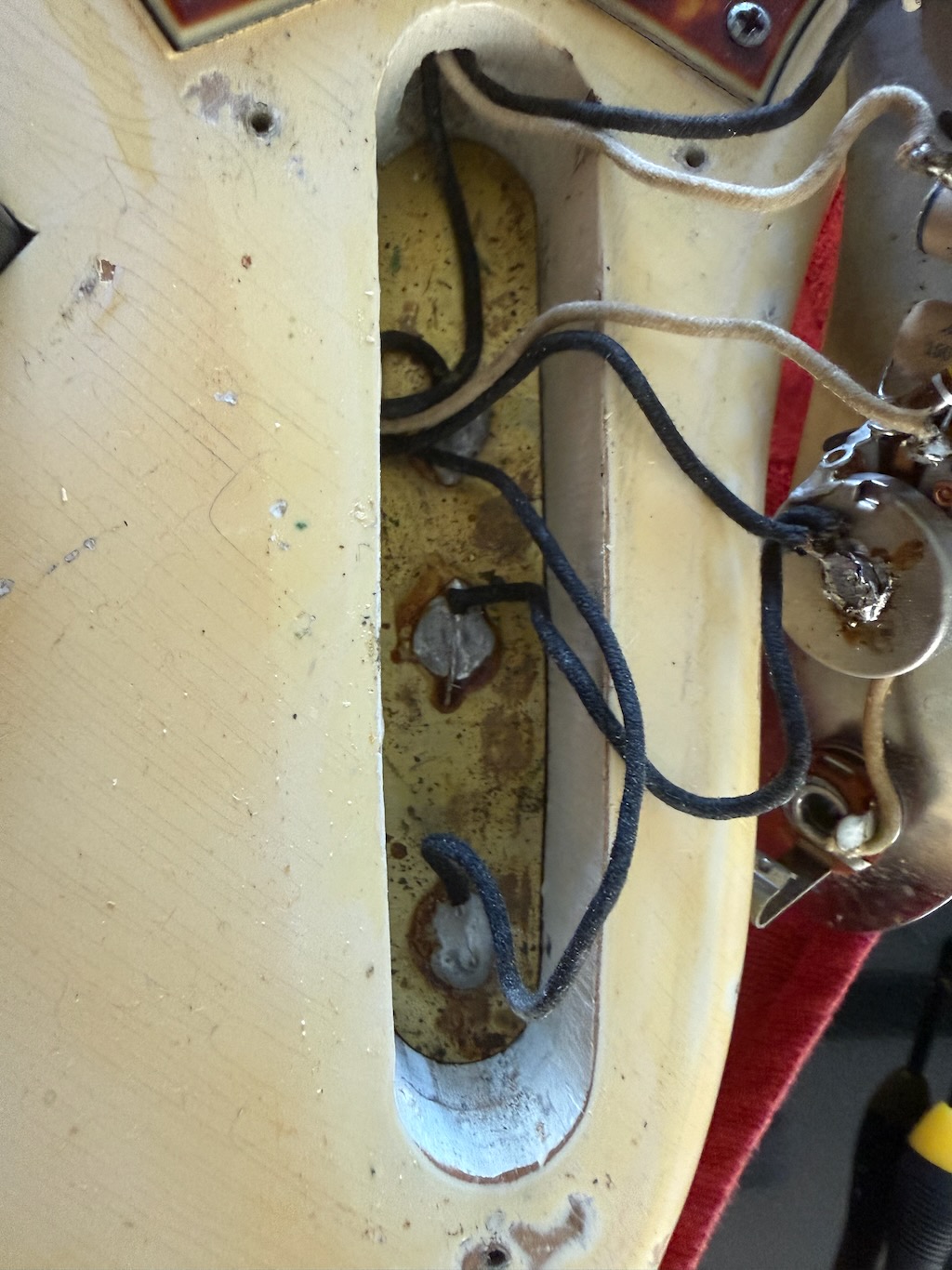 This is the ultimate find its 1 of the very earliest production Pre-CBS “Stacked Pot” Jazz Bass w/all the 1st issue features in all original condition, it has its original Olympic White finish over a very lightweight Alder body & weighing in at a scant 8 lbs. 10 oz; these Jazz Basses are ridiculously rare as we have not seen many from 1960, its “Unbound” Slab Rosewood Clay Dot neck is super slim as only the 1st ones were & has an all in one logo w/the “counter body” portion inclusive, she has a penciled neck date of 9/60 making it 1 of the very 1st few produced & perhaps the very 1st “Custom Color” White Jazz Bass ever, it’s sporting a very low serial # (54XXX) stamped on the 4-bolt neck plate, its original Tortoiseshell Nitro pickgard has that luscious color used only in 1960-1 w/1 small top chip reglued, its 2 pickups are super smooth w/that quintessential “Jaco” sound !, its stacked pot date codes are from the 25th week of 1960, its original control cavity has the earliest type copper solder plates, its so cool from its nickel tuners to its threaded saddle bridge w/outside ground wire in place w/its original “String Mute” screw holes, its all original in most respects w/only a pro-refret & its pickup leads being re-soldered, still retaining its original bridge & pickup covers w/a sticker & marker from 1 of its previous owners, a Mr. Lou Guardino from Florida, this is from Leo’s earliest Jazz Basses & has a gorgeous patina for a 66 year old original, it plays & feels incredible, other than having some major play time all over, she’s still excellent overall, 1 of the best & most desirable examples on Earth, comes complete in her original Brown Tolex/Orange lined Hard Case.