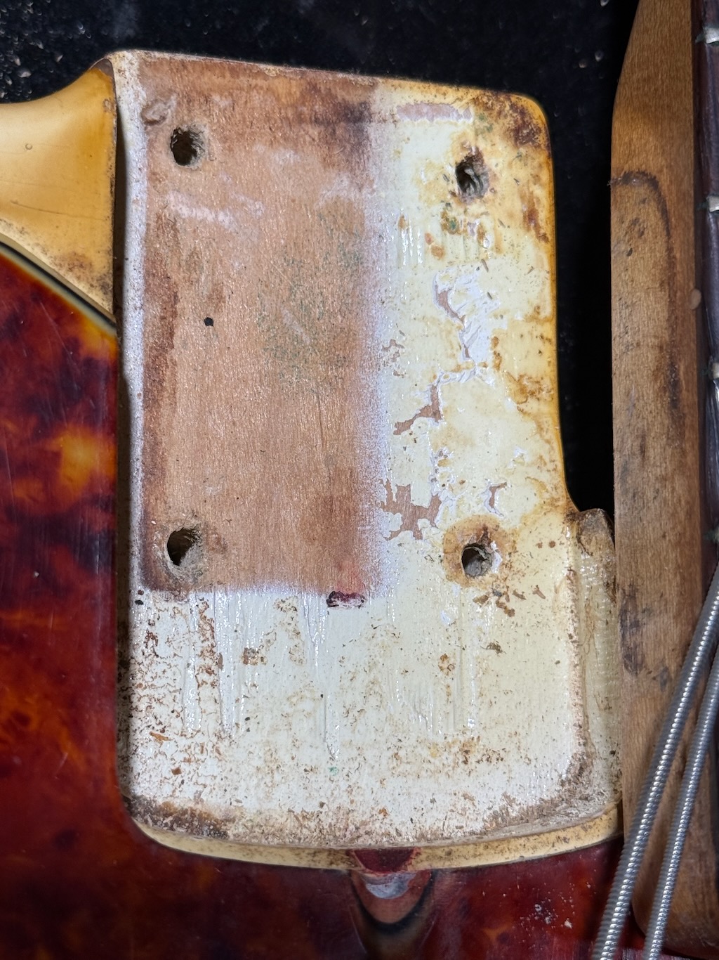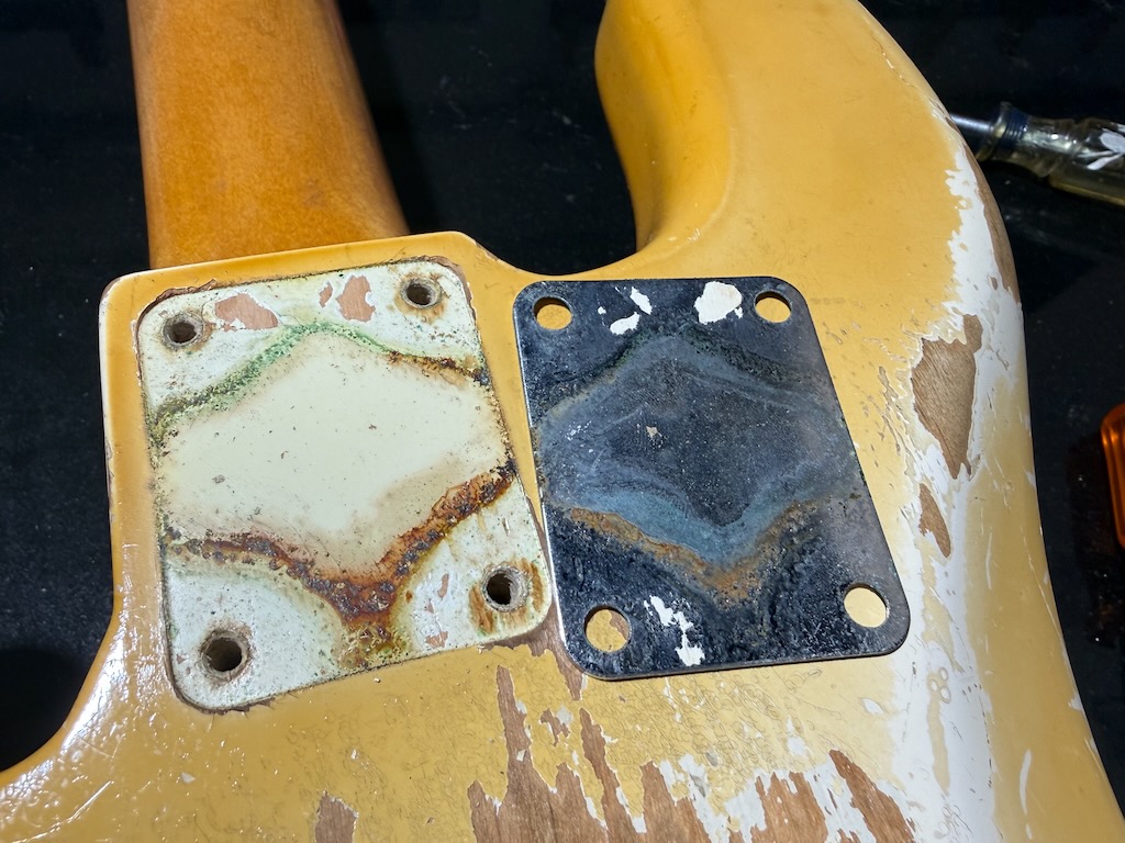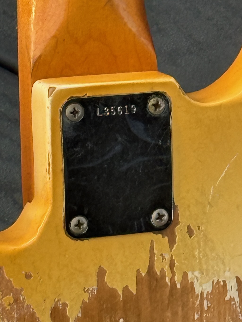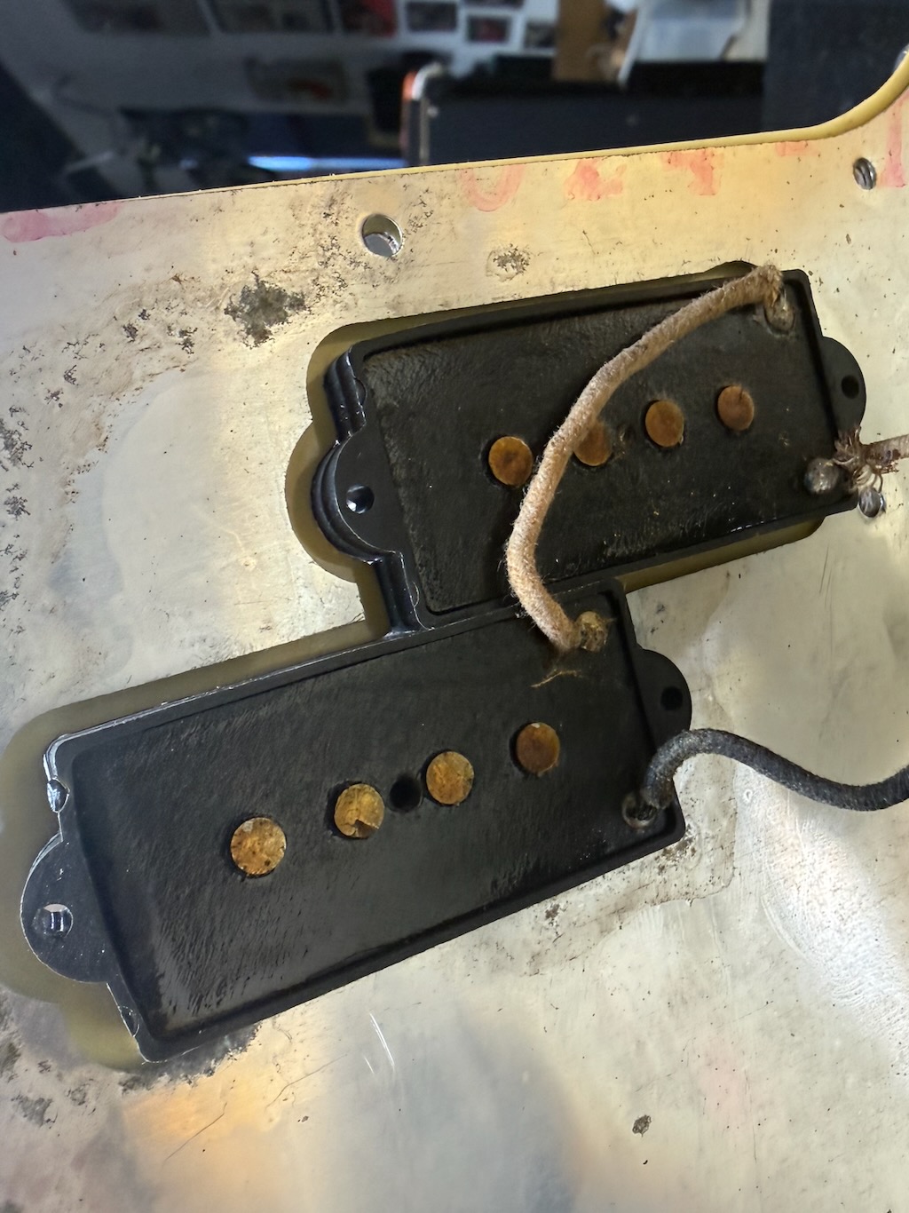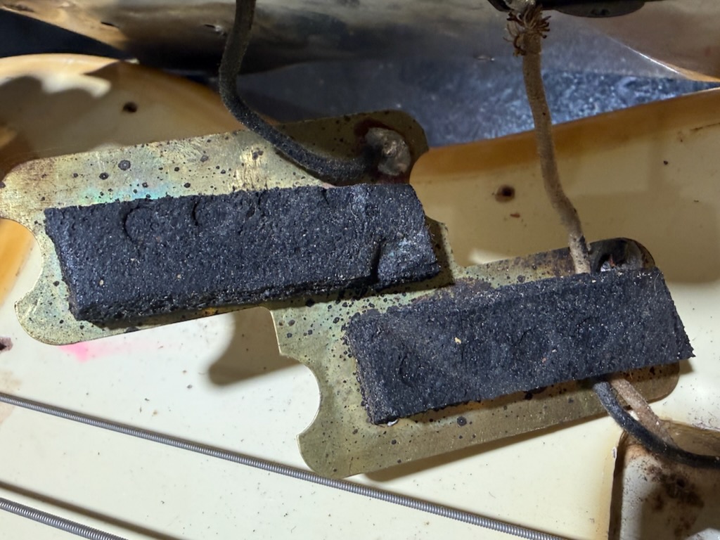 Check out this really collectible & all original 1964 Fender Precision Bass w/all Pre-CBS features in the rare Custom Color of Olympic White over an alder body, its yellowed over the years & its got some nice fade & plenty of play time all over. It’s got a dark Brazilian Rosewood fingerboard w/clay dot inlays dated to August 1964. It also has its original pepperoni colored tortoise’gard w/that beautiful classic color combo. Its split pickup is super smooth & its pot codes date to the 47th week of 1964. It’s the coolest Pre-CBS period P Bass w/all the coolest traits that’s excellent – overall & comes w/its nice original Black Tolex hard case.