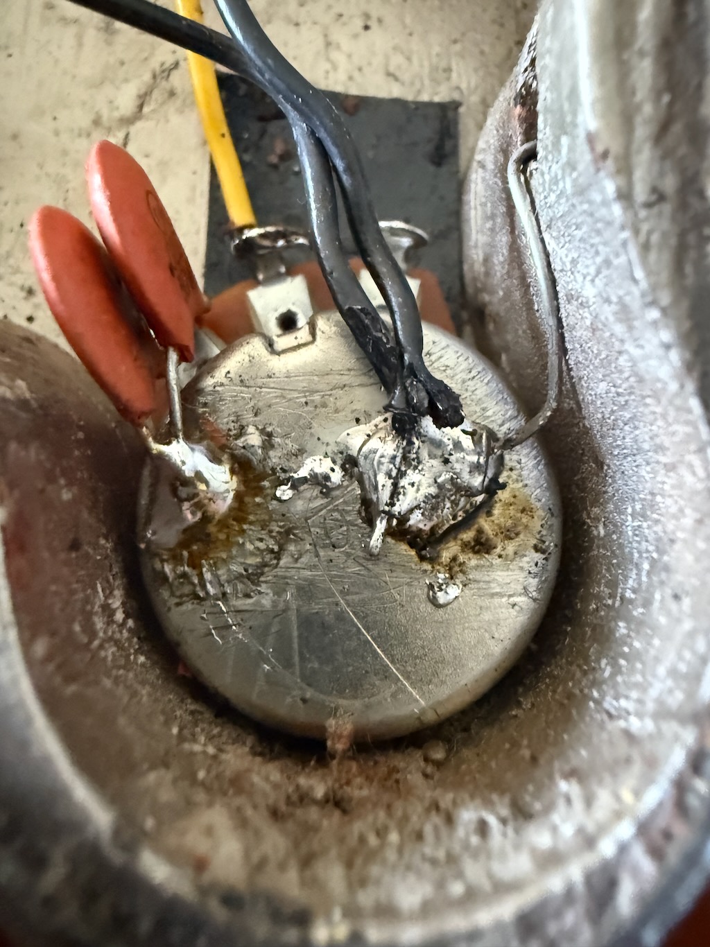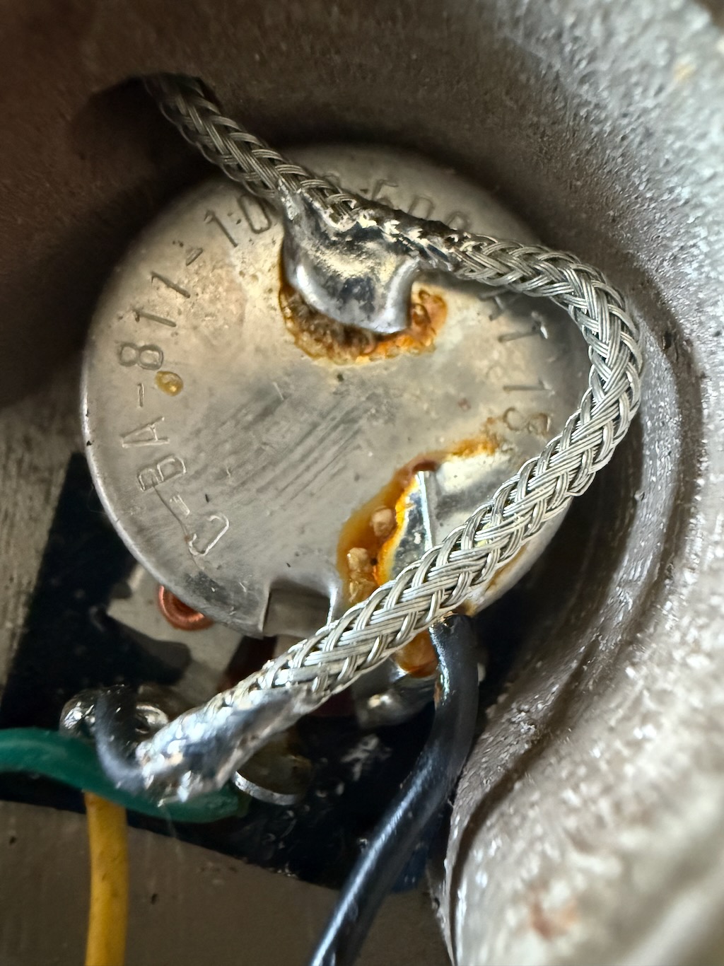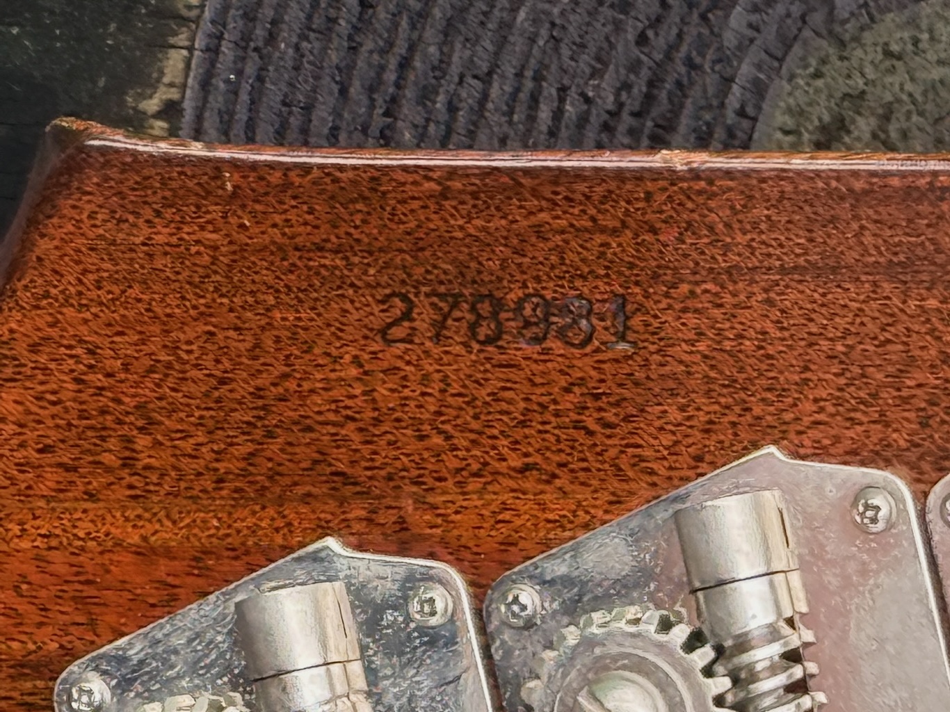 These early production Reverse” Thunderbird’s & Firebird’s were so far ahead of time & very few were ever made comparatively to Fender’s P & J Basses. This particular example was ordered in Gibson’s most popular color of a Dark 2-tone Sunburst finish all over its pretty mahogany neck & body. Very little yellowing appears yet she has slight playtime all over. These tend to get funky from playing in bars & clubs & get nicotine stained. Its rosewood fingerboard is straight as an arrow & its neck is very playable. It’s nickel plated pickup cover & all parts are all original & faded like they should be. It has some weather checking up here & there down the back of the neck & body. Its original pickup sound like a Precision Bass w/a thinner nut than most Gibsons & a very straight neck. Its original pickgard is ultra clean & has no shrinking or cracking around the screws. It has its nickel plated bridge/mute cover is still intact along with/the factory mutes. The best part is that its 2 original pot codes date her to 1964 but cannot be read as its solders blocks them. A rare 8 lb. 9 oz. bass that plays delightfully & sounds great at a fair market value. It’s truly 100% original, 1 of the best available & comes in an original black tolex/yellow lined square hard case.