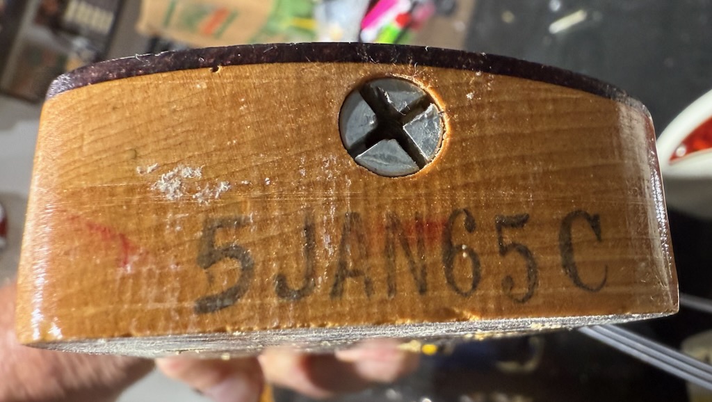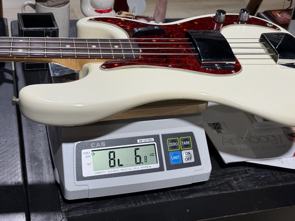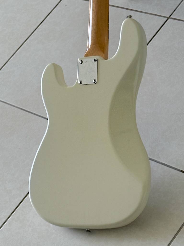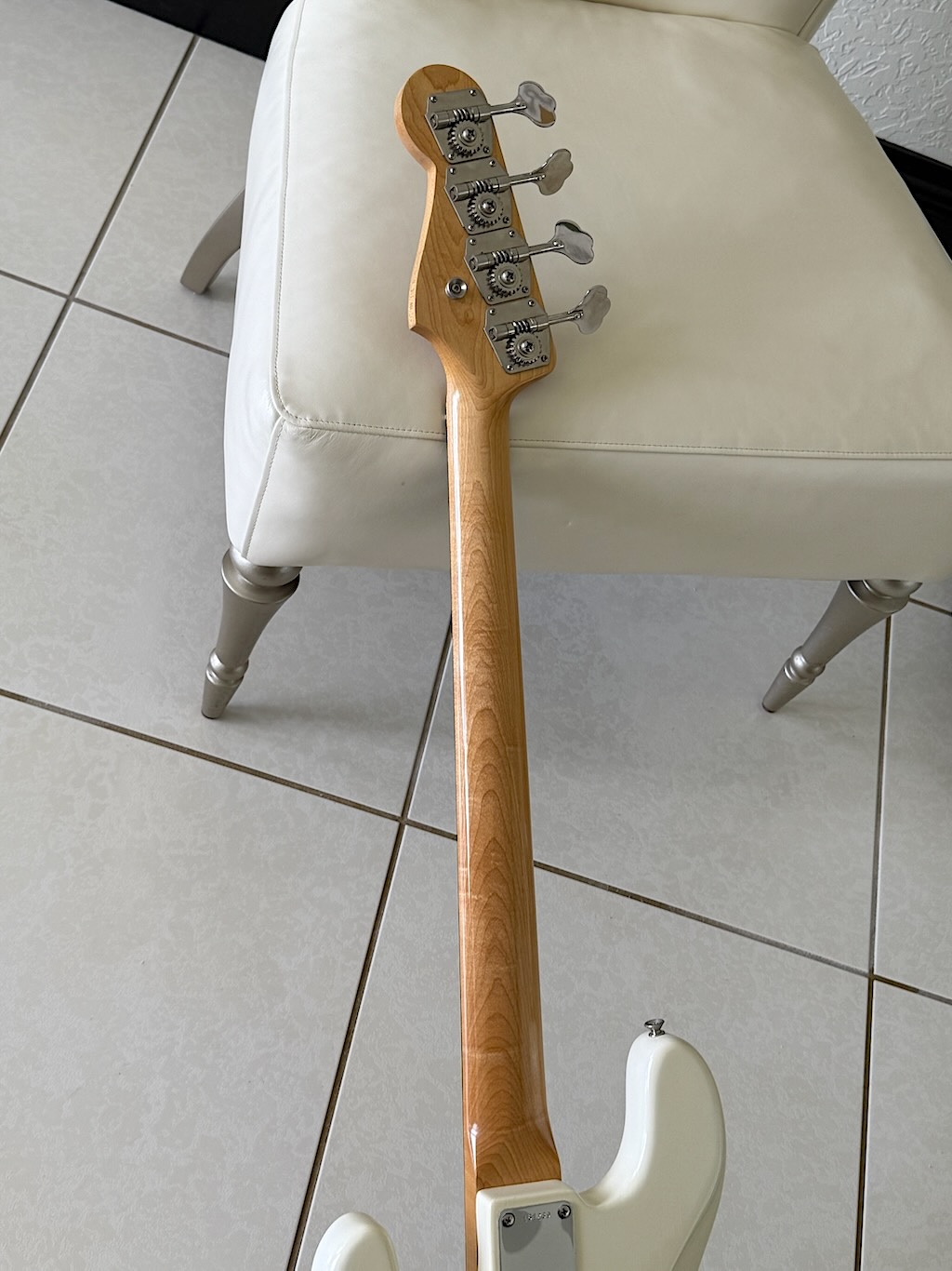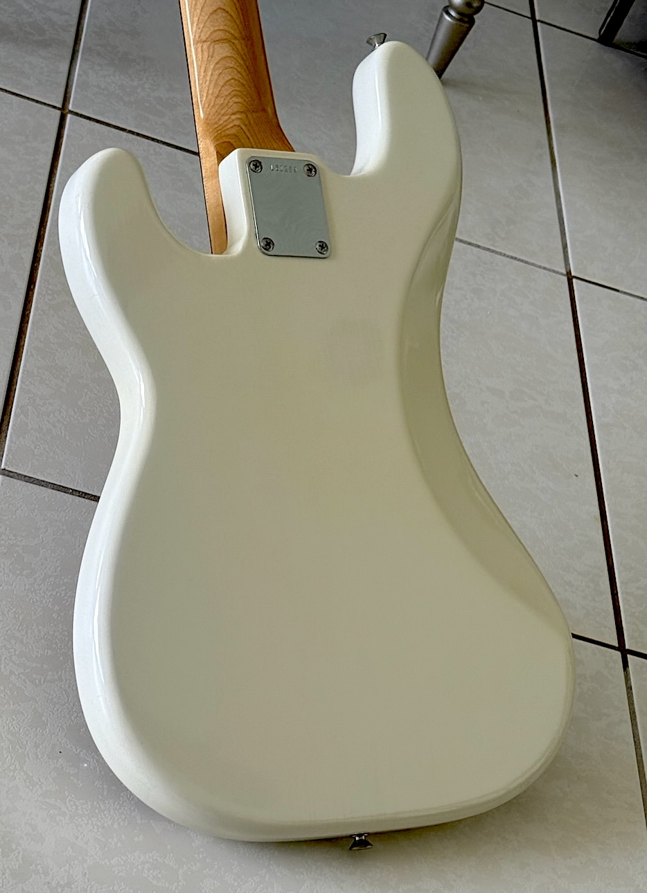 Check out this really outragious & extremely collectible 1965 Fender Precision Bass w/all Pre-CBS features that literally is like new from back in 1965. It has an original unfaded Olympic White nitro finish over an alder body, its very colorful 1st of the pearl dot inlaid Brazilian Rosewood fingerboards date stamped January 1965, she has the white-ist maple neck w/some fabulous grain & figuring we’ve seen during these late Leo’s years. Its also has a minty tortoise pickgard. Its split pickup is super smooth. Its pot codes date to the 50th week of 1964. It’s insane to find one from under the bed ever & for a 60 year old original, they do not get any better. What makes this even cooler is that it just came from “Robin Trower’s” Bass player, Mr. Glen Letsch, from his personal collection of the last 15+ years. This bass has never been taken apart from birth ever until now as it’s still sporting its factory original installed blue cloth wrapped Flat Wound Fender Flat strings. It’s truly Mint overall w/only some very faint checking w/almost no aging to its finish. It’s complete w/its original Fender polishing cloth, cord & leather strap all in its minty matching original Black Tolex hard case.