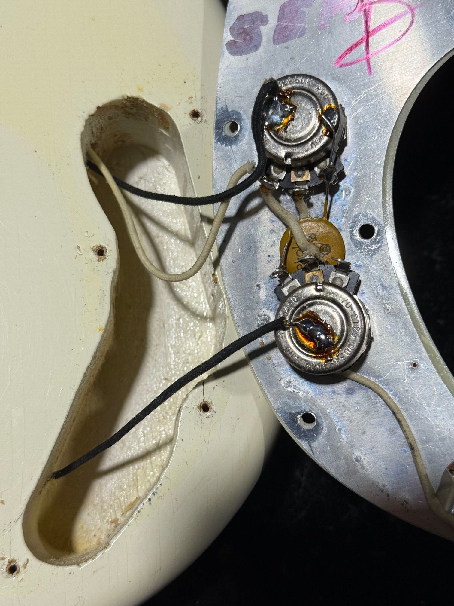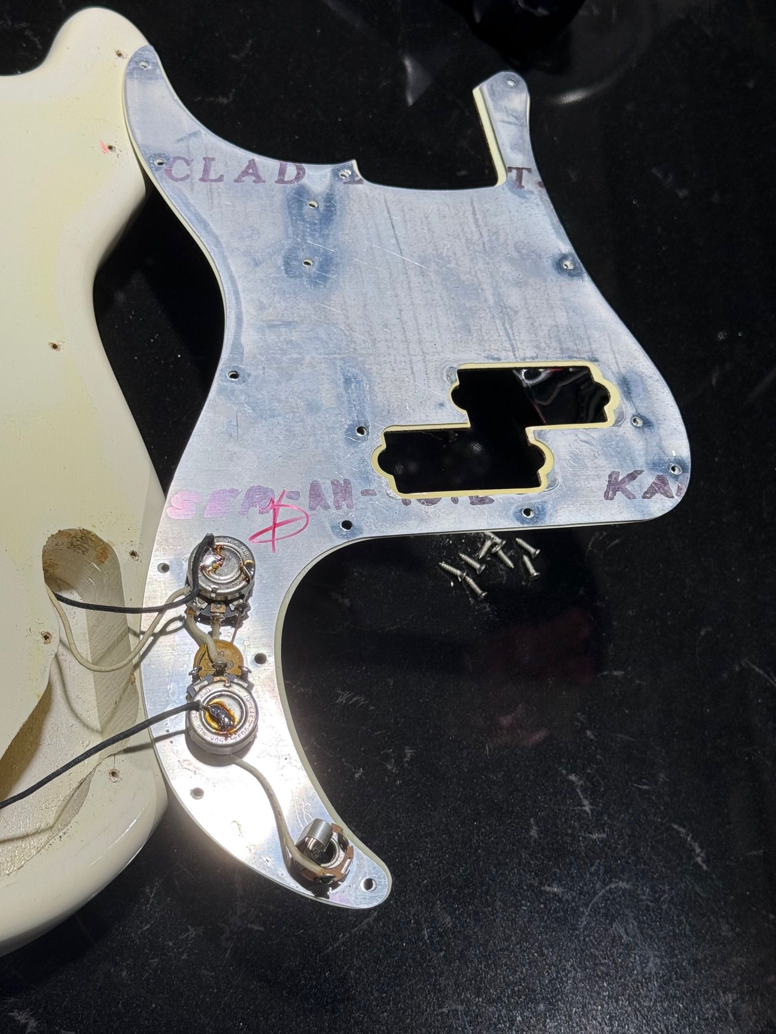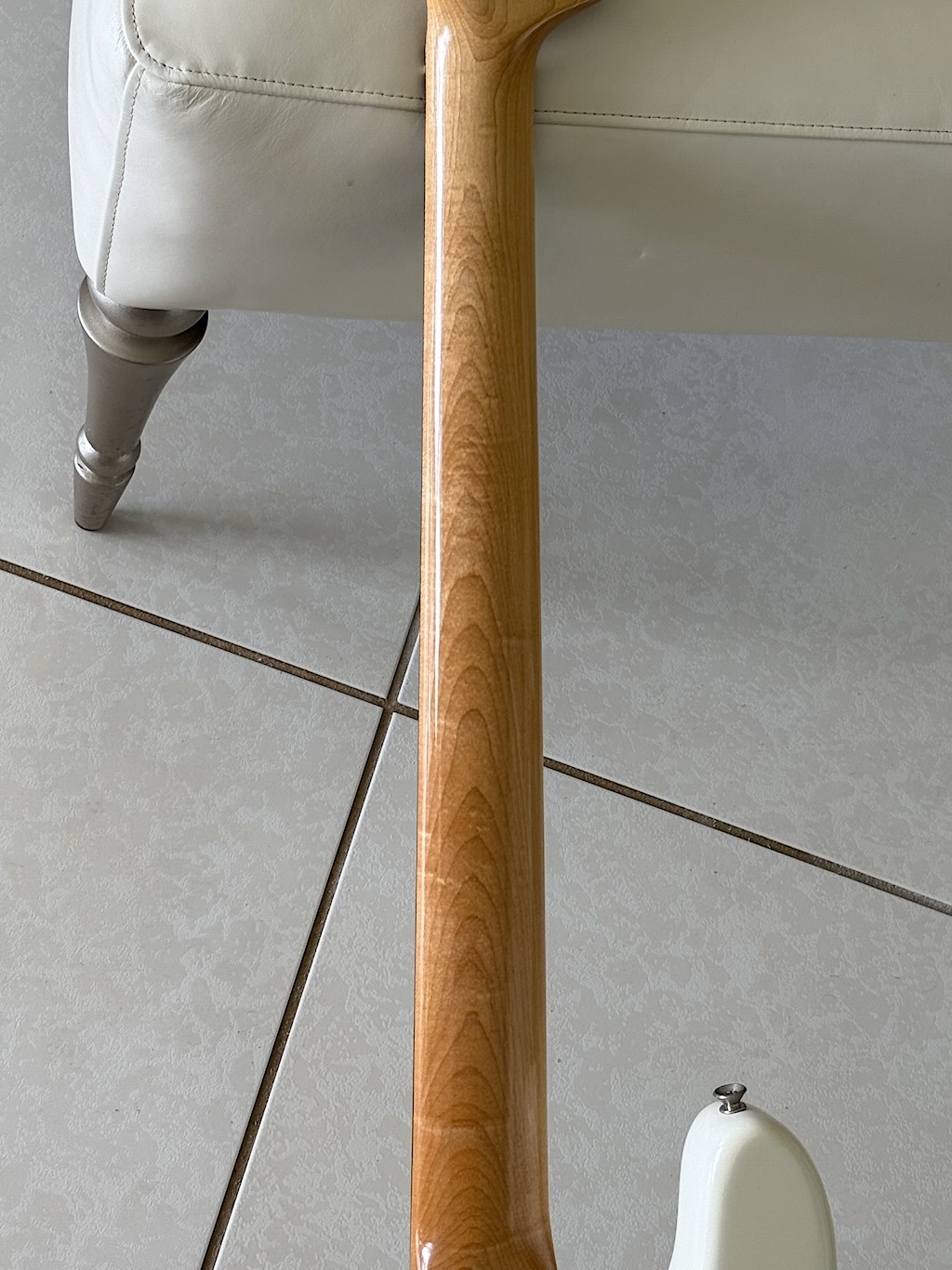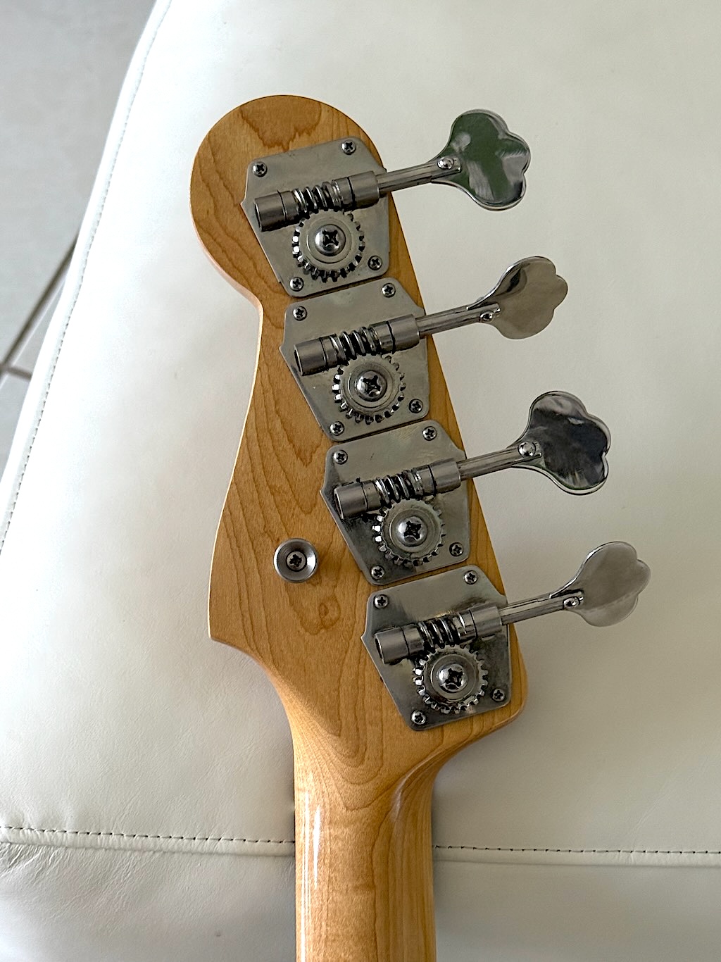 Check out this really outragious & extremely collectible 1965 Fender Precision Bass w/all Pre-CBS features that literally is like new from back in 1965. It has an original unfaded Olympic White nitro finish over an alder body, its very colorful 1st of the pearl dot inlaid Brazilian Rosewood fingerboards date stamped January 1965, she has the white-ist maple neck w/some fabulous grain & figuring we’ve seen during these late Leo’s years. Its also has a minty tortoise pickgard. Its split pickup is super smooth. Its pot codes date to the 50th week of 1964. It’s insane to find one from under the bed ever & for a 60 year old original, they do not get any better. What makes this even cooler is that it just came from “Robin Trower’s” Bass player, Mr. Glen Letsch, from his personal collection of the last 15+ years. This bass has never been taken apart from birth ever until now as it’s still sporting its factory original installed blue cloth wrapped Flat Wound Fender Flat strings. It’s truly Mint overall w/only some very faint checking w/almost no aging to its finish. It’s complete w/its original Fender polishing cloth, cord & leather strap all in its minty matching original Black Tolex hard case.