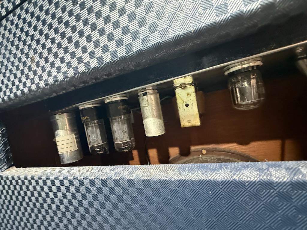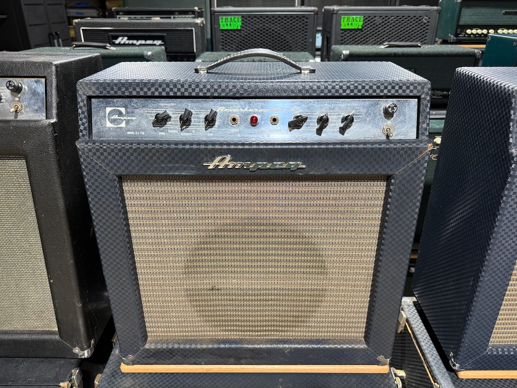Super great sounding 1966 Ampeg GS-12R 1×12 combo. Excellent amp ! Its Blue Tolex is the coolest from this period. Lush reverb and excellent sounding tremolo. Electrically it is in great shape, serviced to good working order. Operating exactly as it should. The speaker is an Ampeg labeled CTS which sounds really nice with this amp. Please see photos for cosmetic condition. It’s not a show queen but a great amp if you intend to use it and gig it. It’s like a cheap Deluxe Reverb ! Excellent overall & we can ship.