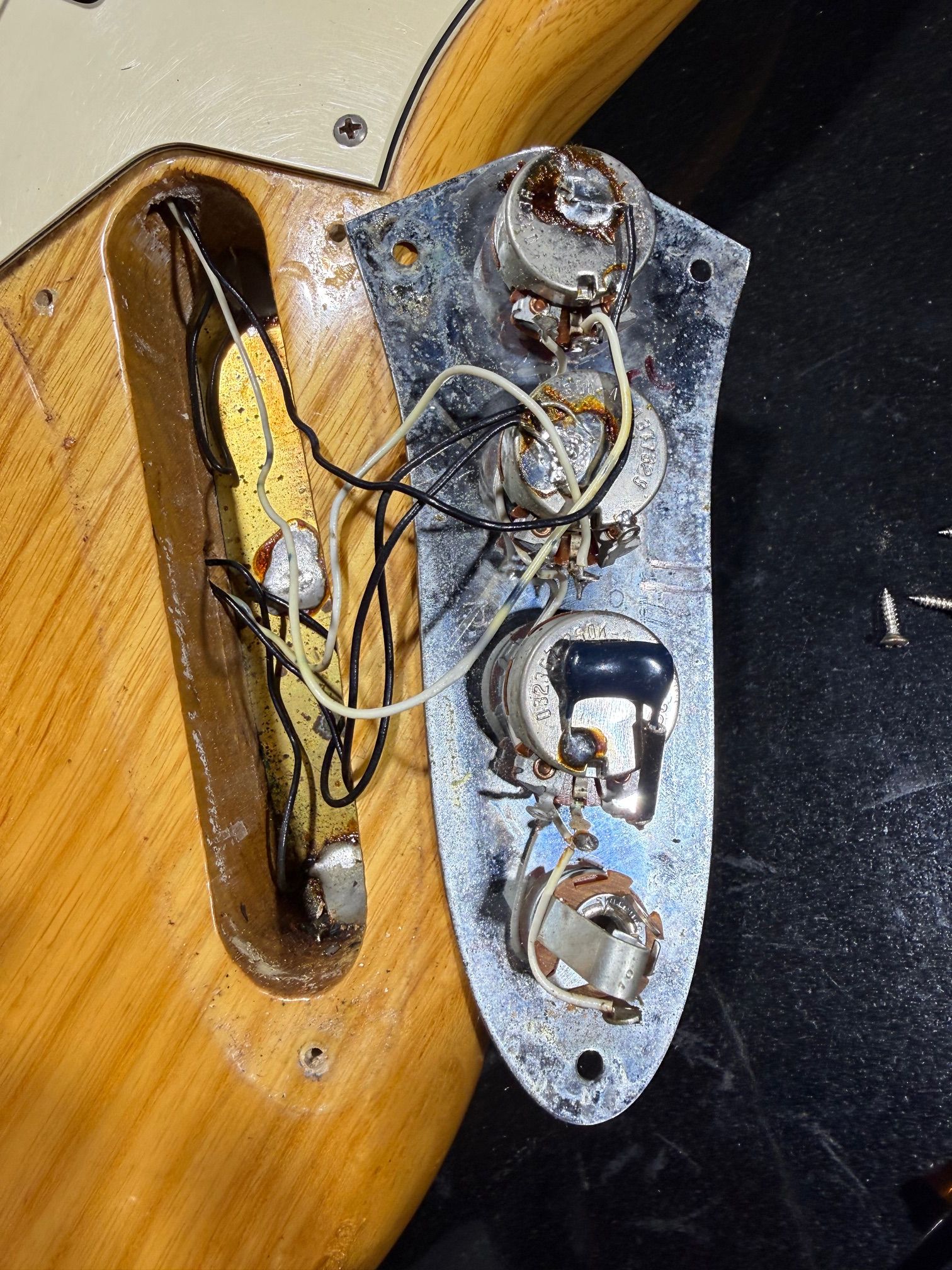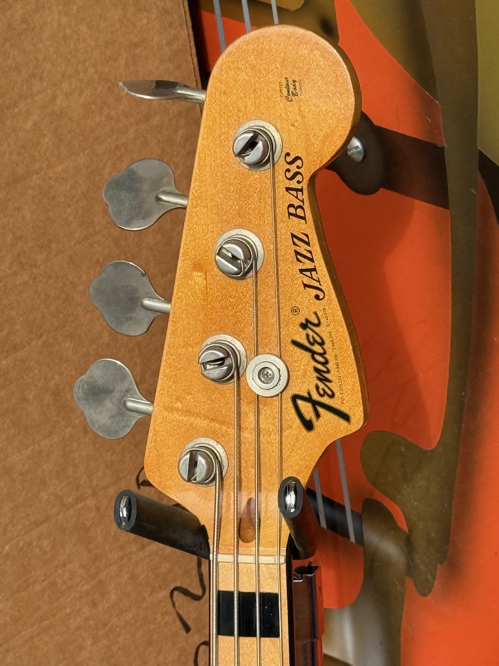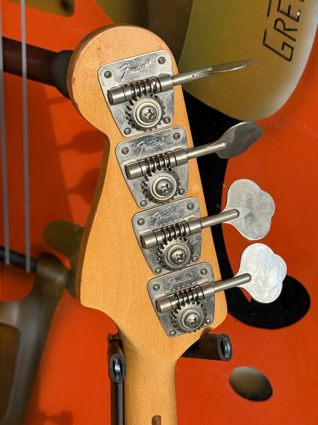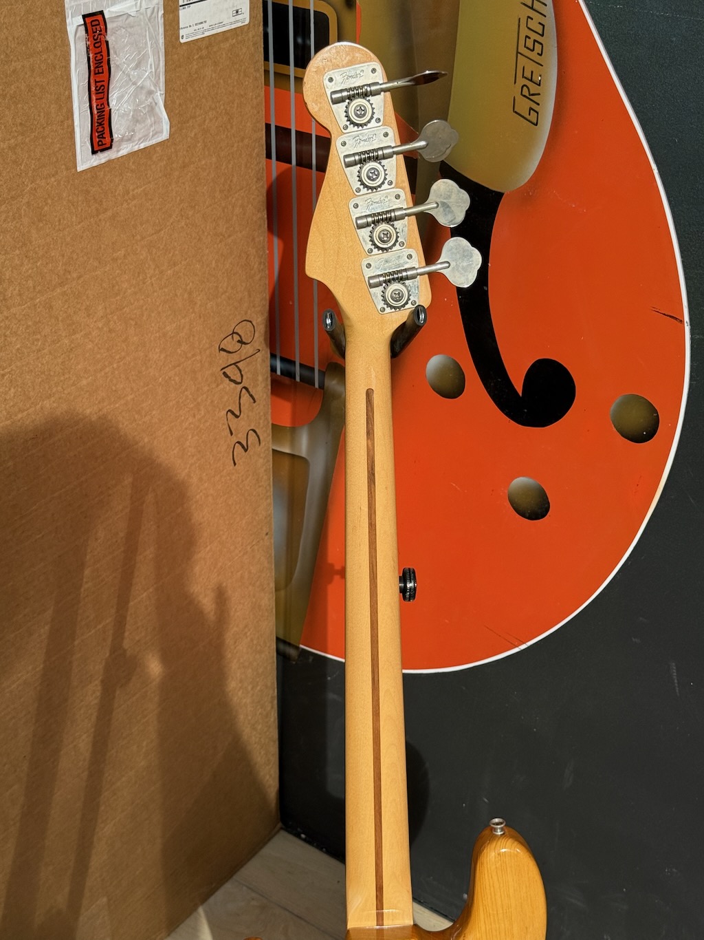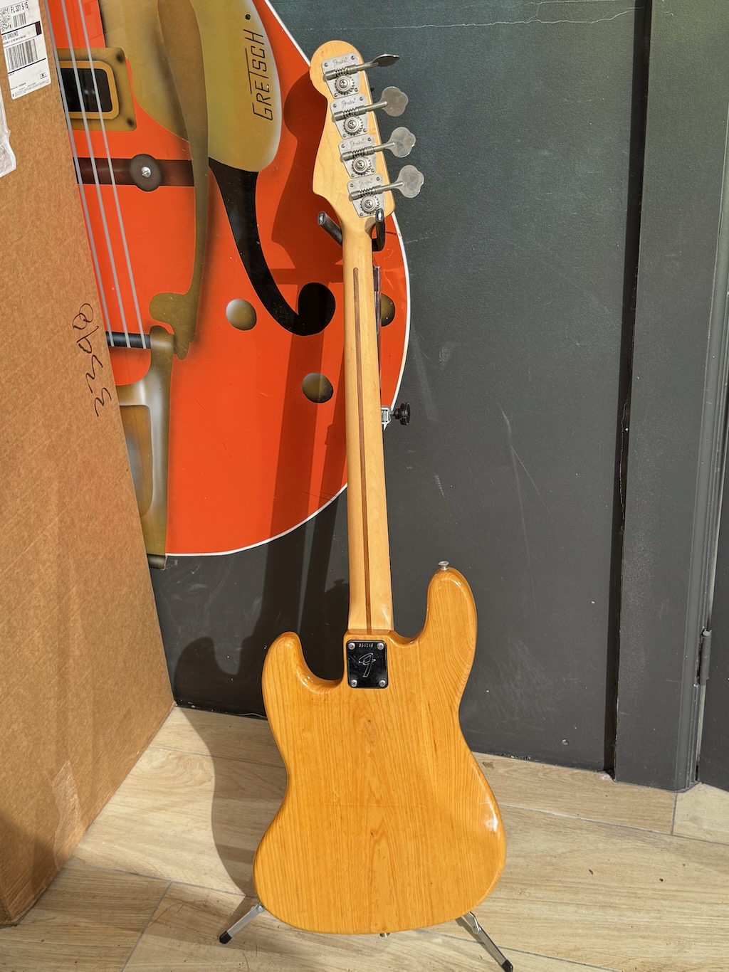 We’ve just acquired this really clean & original 1973 Fender Jazz Bass w/all the right features from its last owner, it has its beautiful original Natural finish over a super grainy lightweight Ash body, its rare Black Bound & Block inlaid 4-bolt Maple neck is super clean w/nice logo & frets, it’s maple neck is clean, unfaded & has pot date codes from the 29th week of 1973, its last of the original White 3 layer’gards that pulls this all together making it one of Fender’s last decades of great Jazzes, its 2 pickups are super smooth w/that quintessential “Jazz Bass” sound !, its so cool & legit from its tuners to its bridge & every single screw from new, it has a gorgeous patina for a 54 year old original, it plays & feels incredible, she’s truly an exceptional example & comes in a newer molded Hard Case.