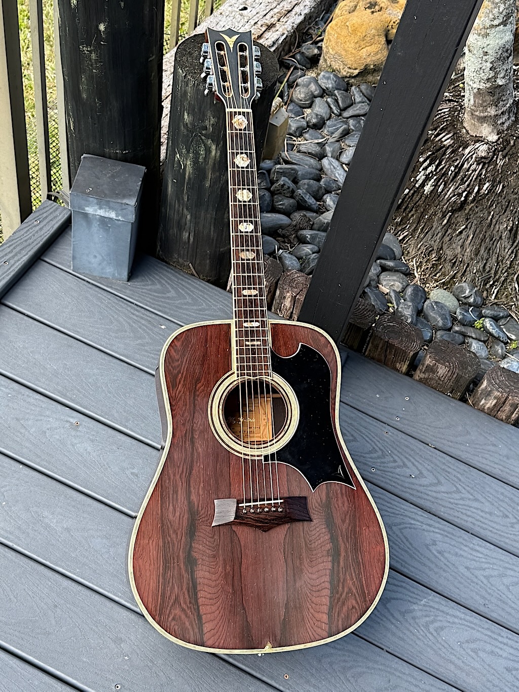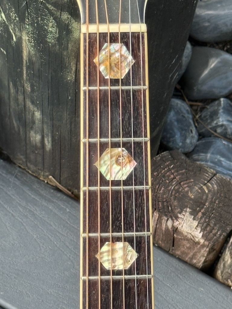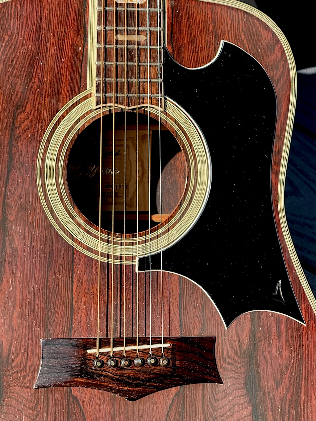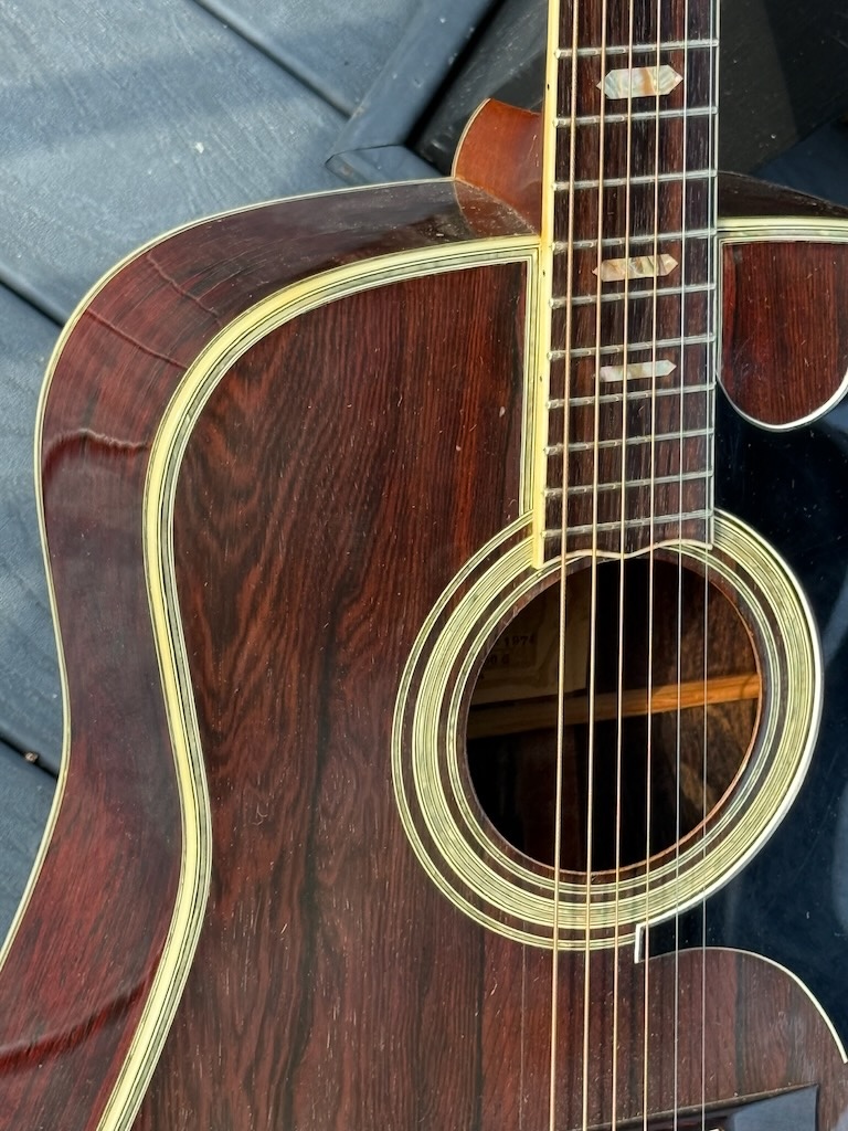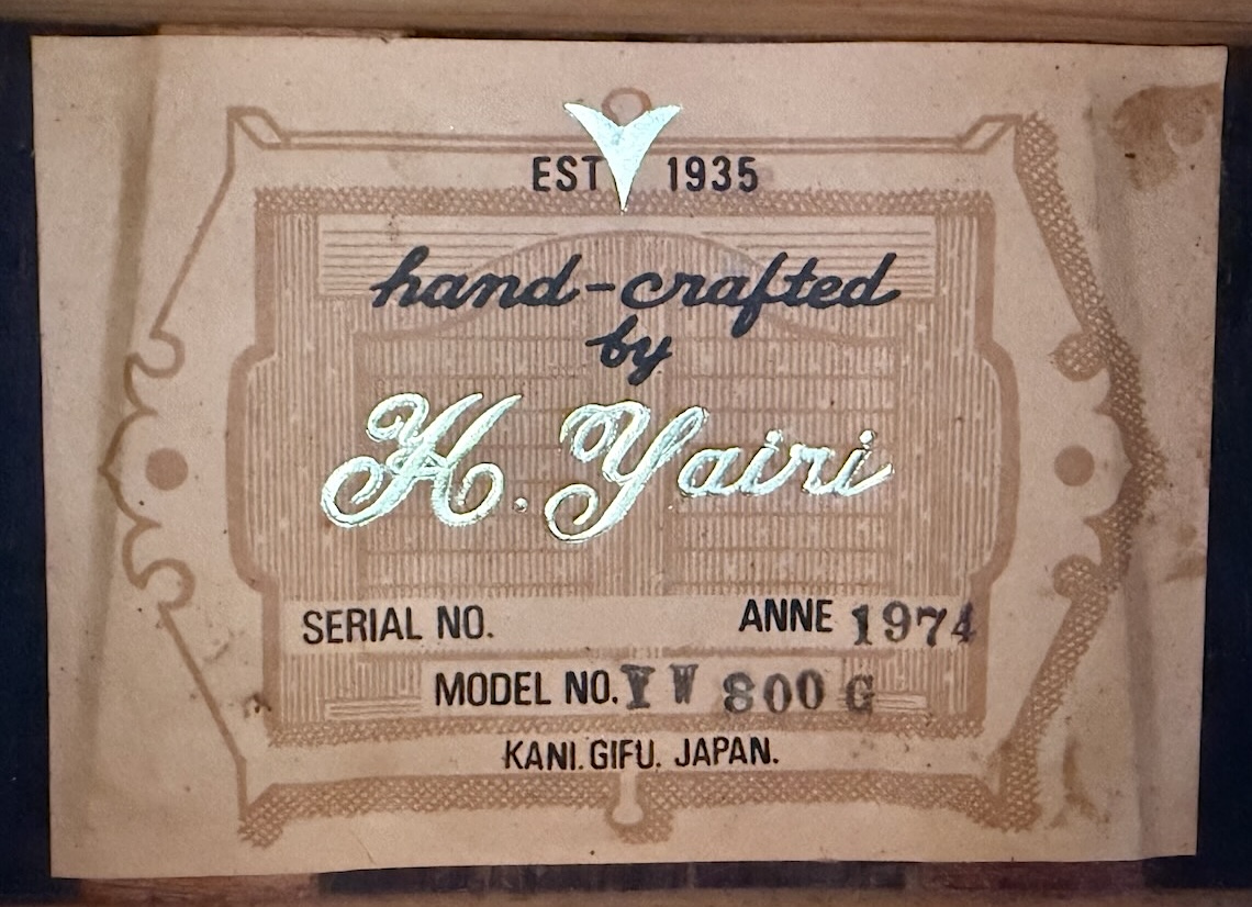 This is a wonderful hand made 1974 Alvarez Yairi YW 800G made w/Premium Jacaranda (ply) aka Brazilian Rosewood top, Back & sides. Its fingerboard and bridge are made of ebony. It has tons of trim & inlays all over its dreadnaught body & fingerboard. This is an early production model that’s 52 years old & in stunning original condition. Gorgeous in every way, she’s excellent overall & co0mes in a nice period hard case.