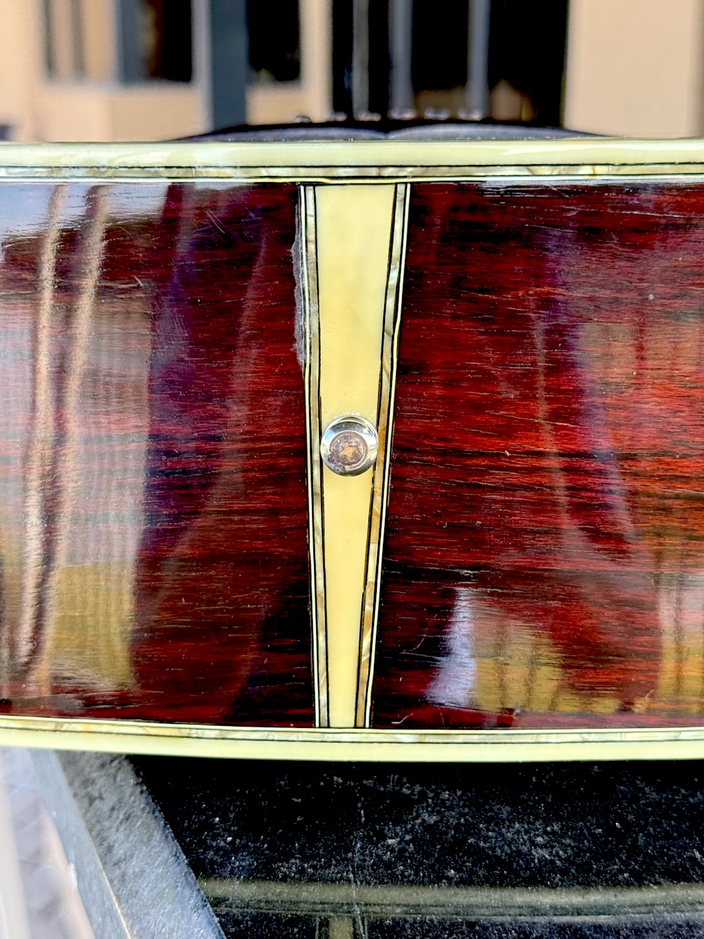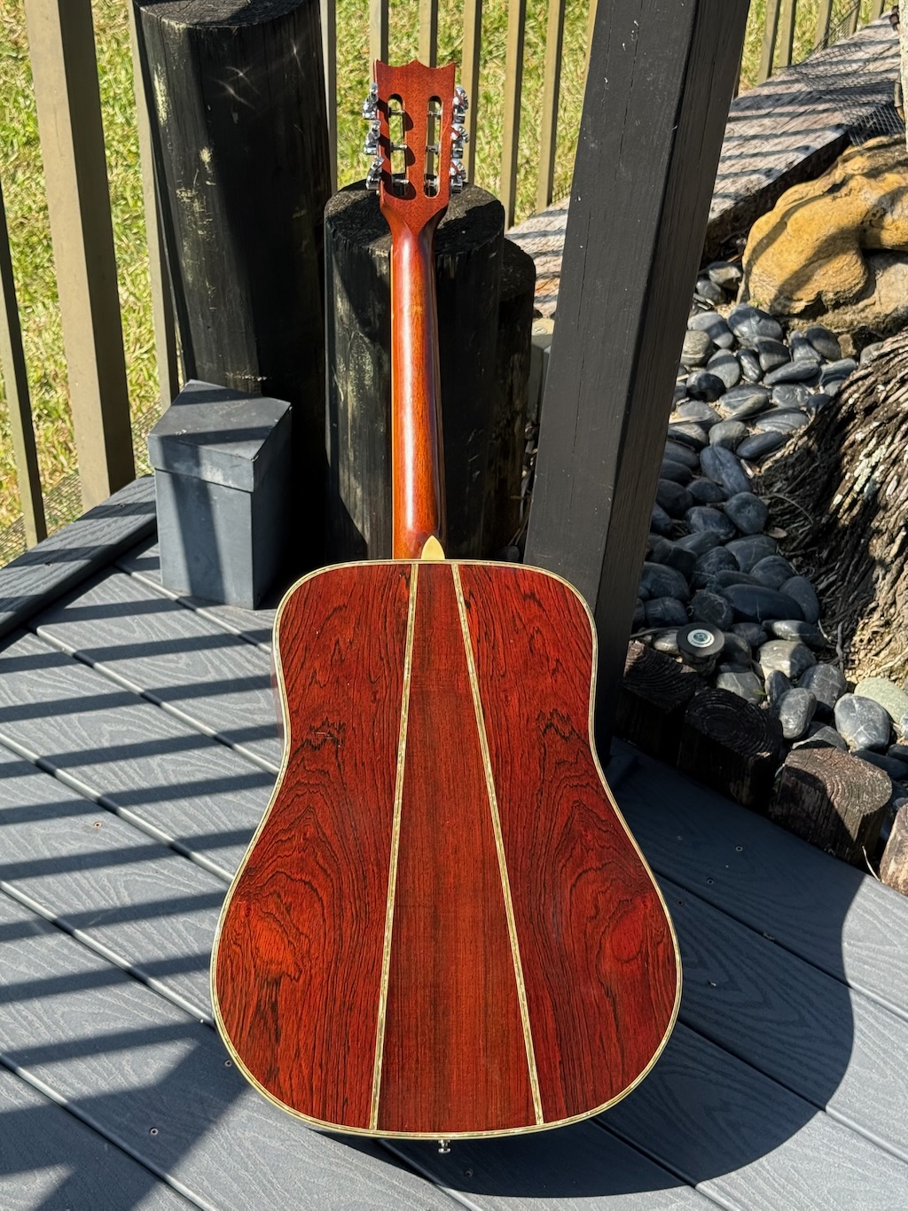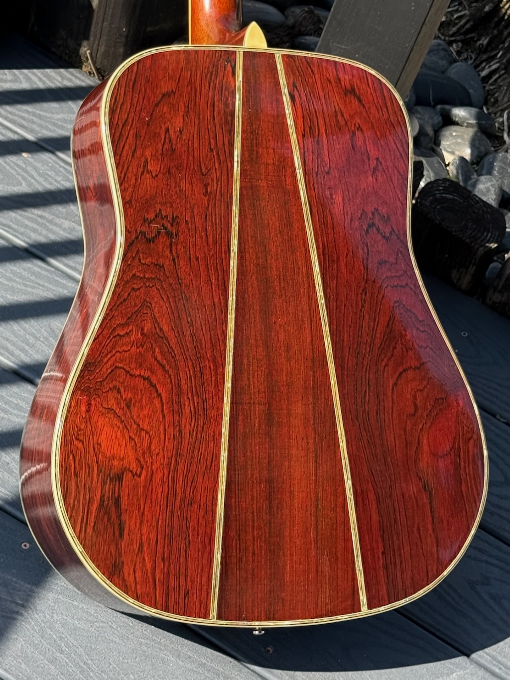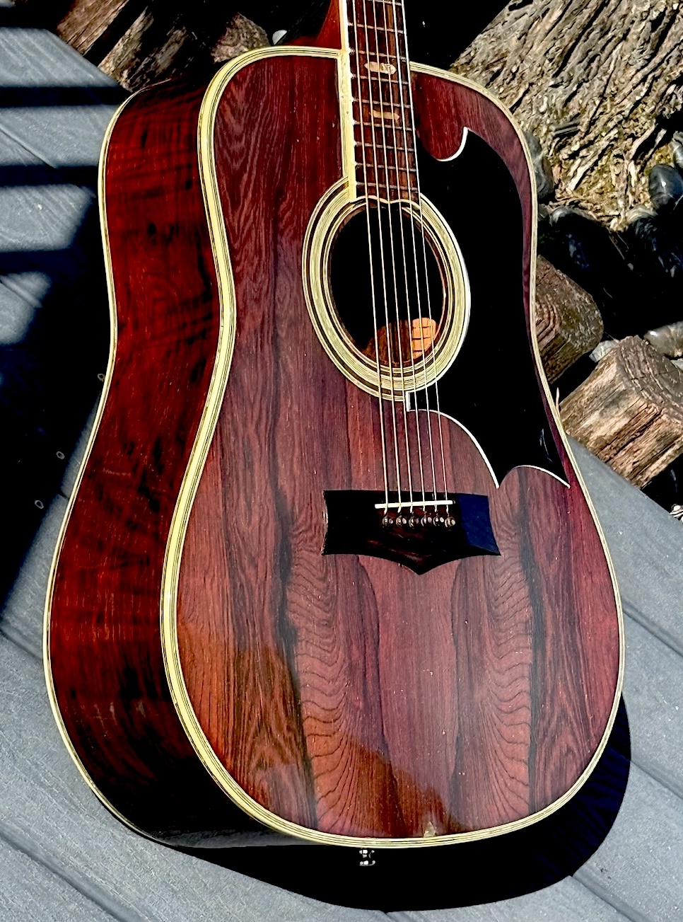 This is a wonderful hand made 1974 Alvarez Yairi YW 800G made w/Premium Jacaranda (ply) aka Brazilian Rosewood top, Back & sides. Its fingerboard and bridge are made of ebony. It has tons of trim & inlays all over its dreadnaught body & fingerboard. This is an early production model that’s 52 years old & in stunning original condition. Gorgeous in every way, she’s excellent overall & co0mes in a nice period hard case.