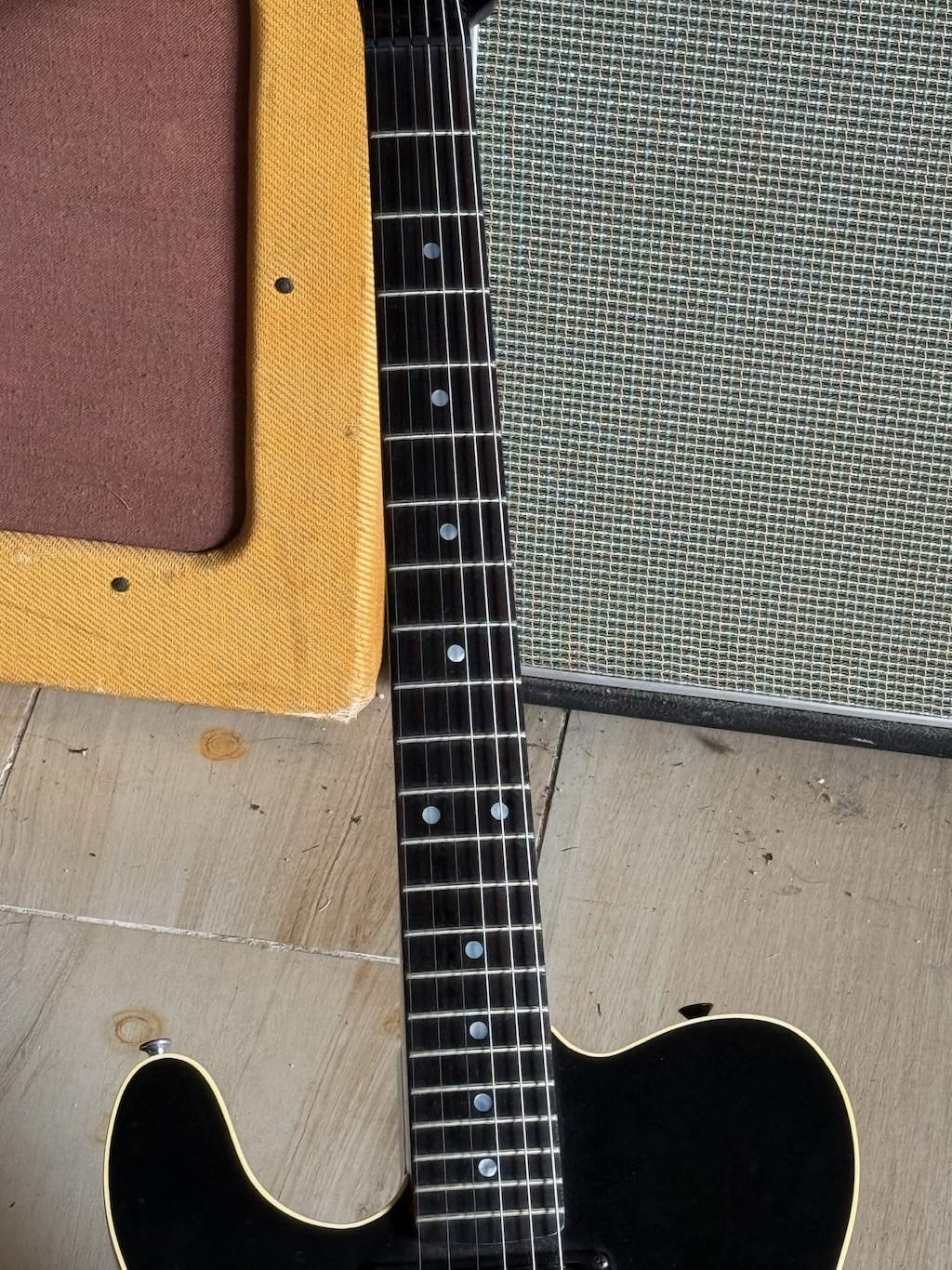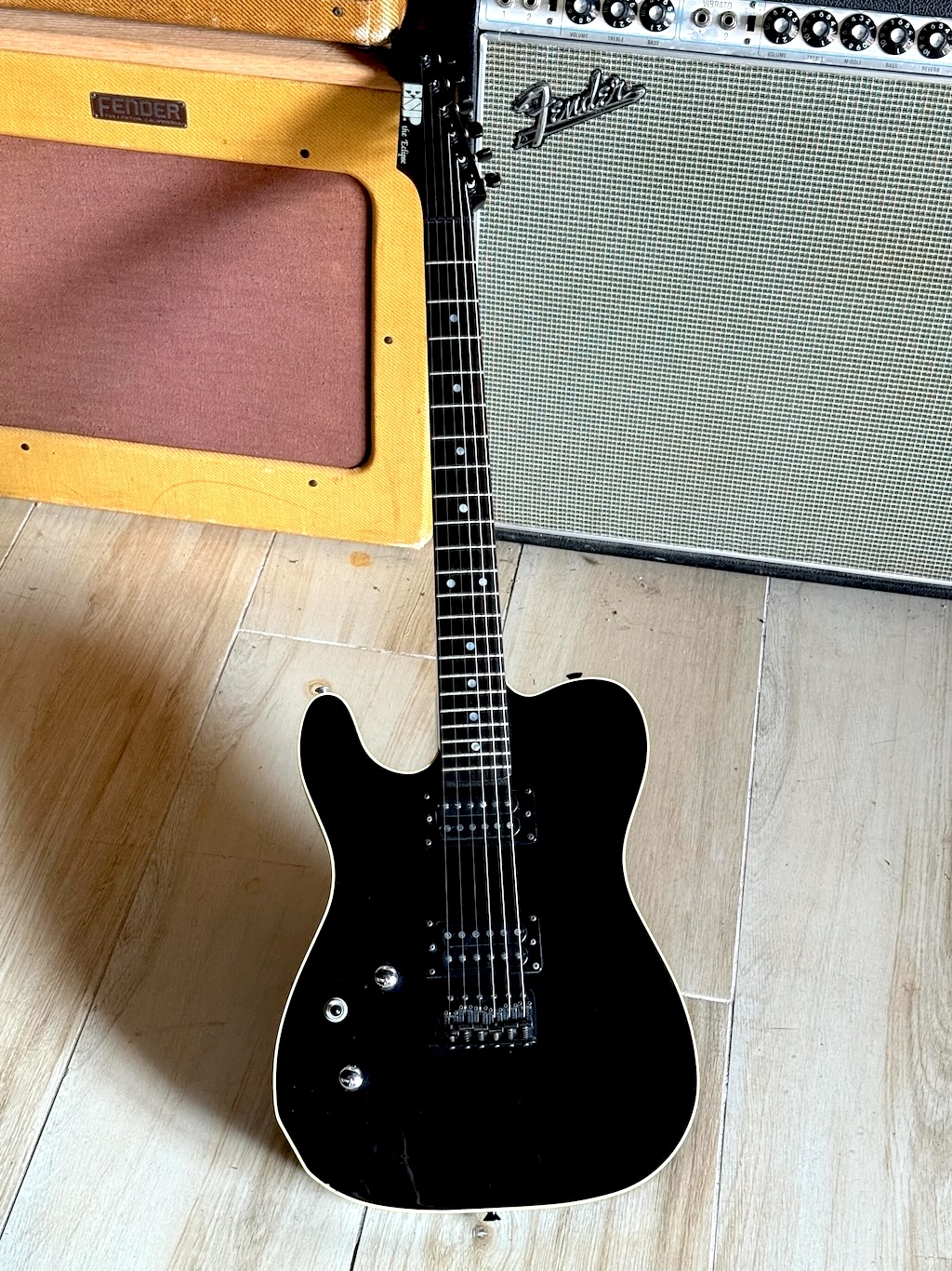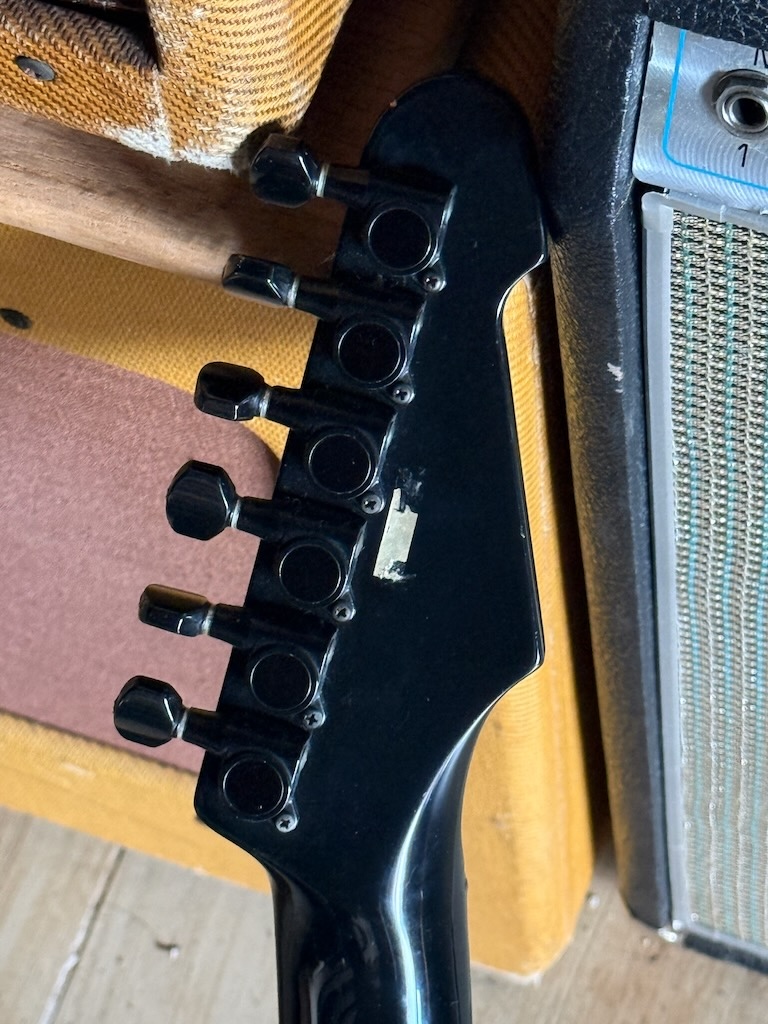 While ESP first got started in 1975 as a small repair shop in Tokyo, it was really toward the mid ‘80s when their guitars and basses grabbed the attention of players around the world. Here is a very rare Japanese 1986 ESP ‘The Eclipse’  in a factory Left Handed version. It’s a 1 of 1 made w/documentation from ESP included. This model was only made in Japan for a limited run during the 1985-86 period and was famously played by Izzy Stradlin when he was with Guns n Roses. Sporting a set of powerful Humbucking pickups & a Strat-like Tremolo system (missing its arm). The rosewood fingerboard feels great & it plays superbly. She’s got a straight neck, truss rod working, plenty of life in the frets. Structurally and electrically sound. Some play wear as you’d expect. Overall shes excellent & comes in a nice Gig Bag.