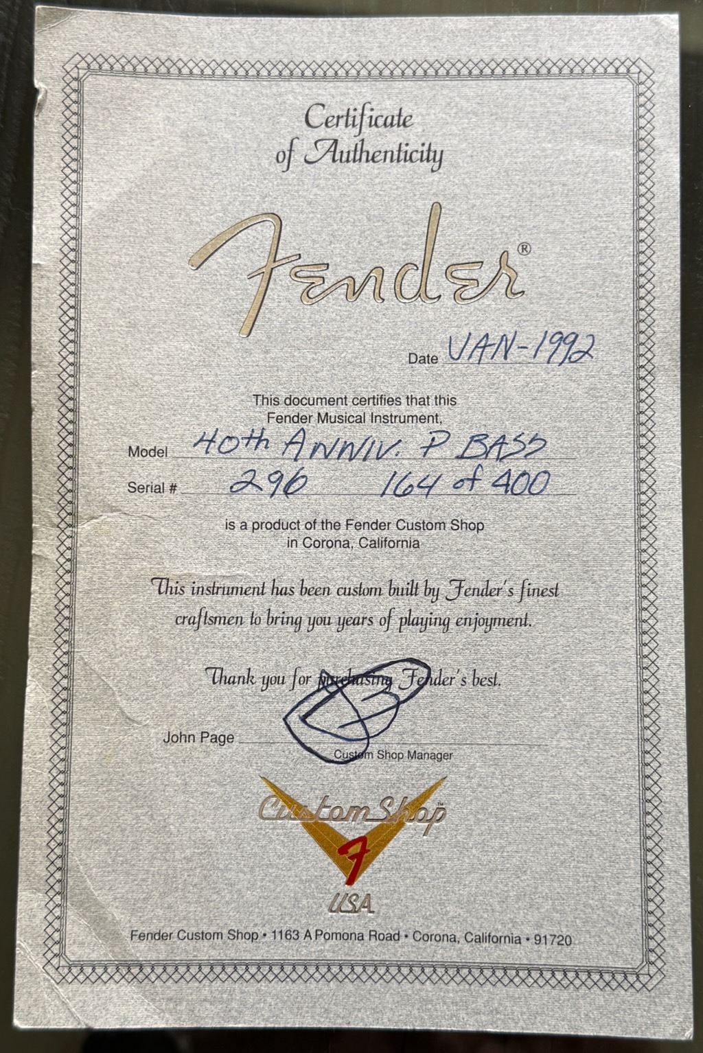 - 1992 Fender Precision Bass Custom Shop 40th Anniversary