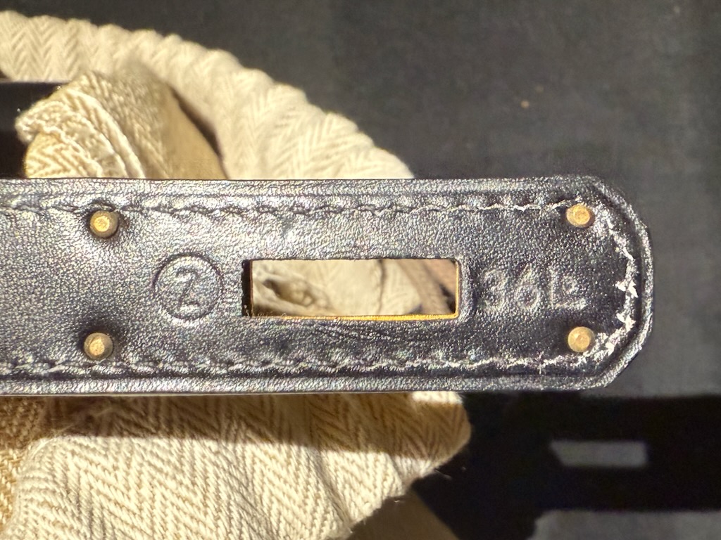 The interior is lined with Black chevre and features one zip pocket with an Hermès engraved pull and two open pockets on the opposite side.