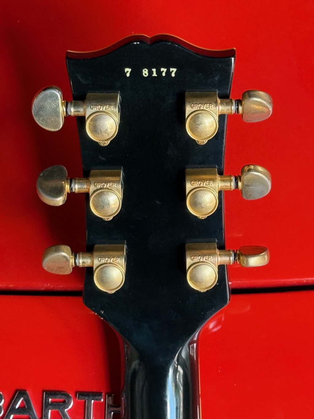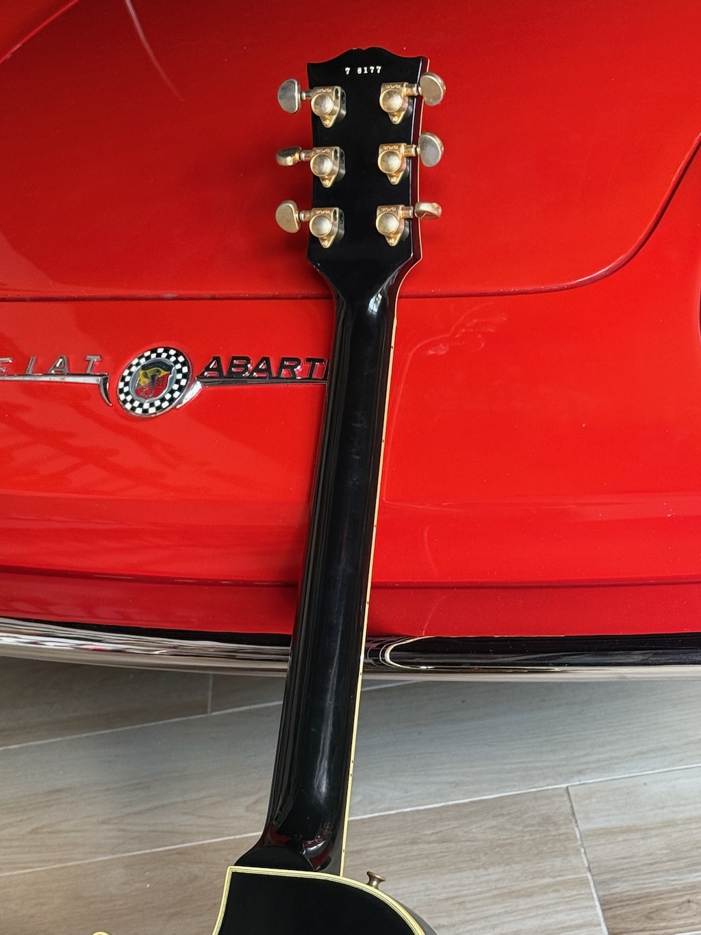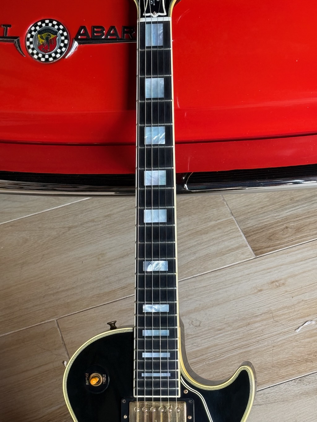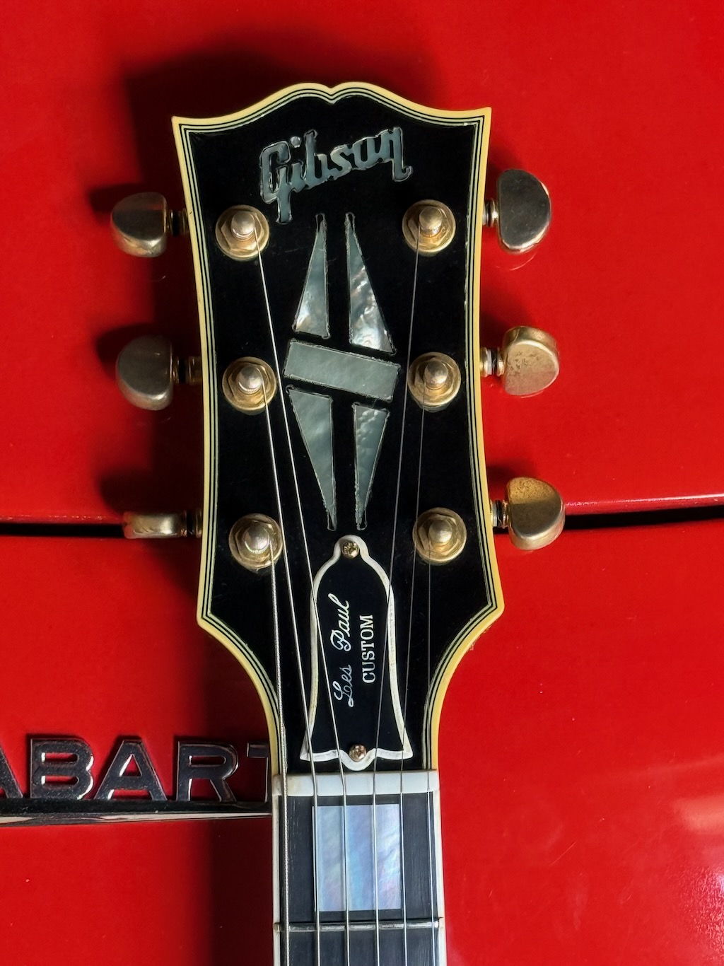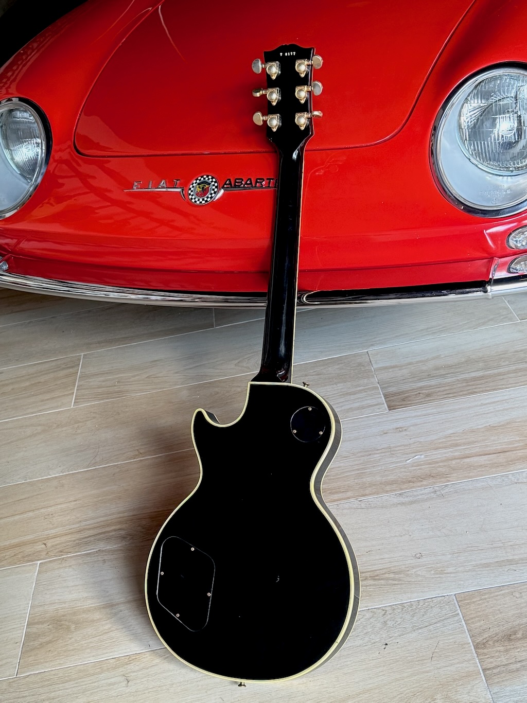 This is a wonderful & maybe 1 of the most desirable late-90’s Gibson Les Paul Custom w/its now extremely rare 3 pickup configuration a la Peter Frampton.. Its original Black finish is stunning w/hardly a lot of play time at all. Its mahogany neck feels great. Its white bound & block inlaid Ebony fingerboard is perfectly playable w/clean Gold hardware all over. Loaded w/a set of original Pat.# Humbucking pickups. It’s 100% original, she’s truly excellent & comes in its original Black fancy tolex case that’s been painted over by its last owner.