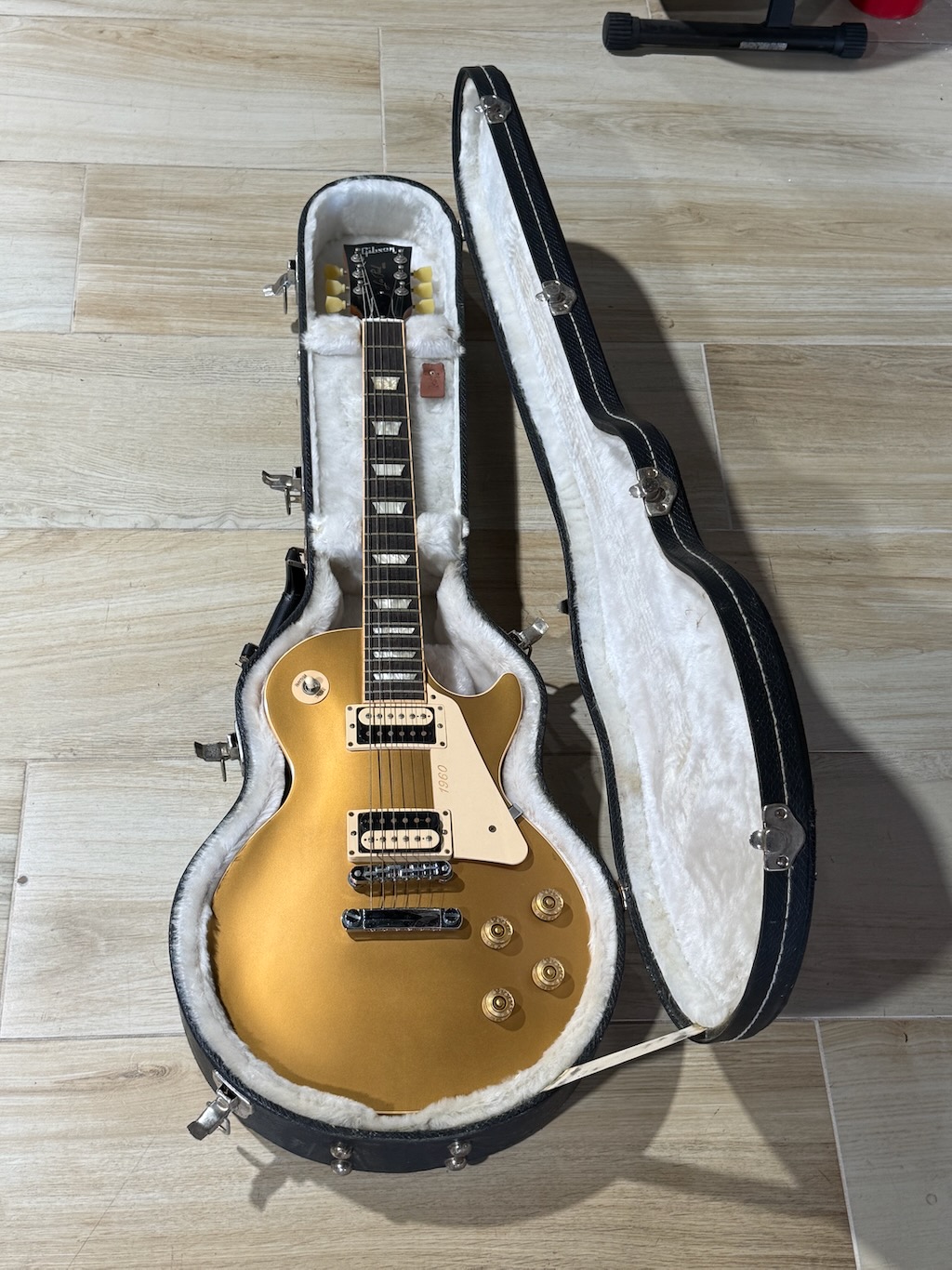 This 2011 Les Paul Traditional 1960 Reissue was born in Nashville, TN, boasts a sleek Satin Gold Top finish over a mahogany body that resonates with rich, authentic tones. The mahogany neck and rosewood fretboard offer an incredibly smooth playing experience, ensuring every note you play is as perfect as its like-new frets. Equipped with two Gibson PAF “Zebra” Humbuckers, this guitar delivers that unmistakable vintage punch, perfect for reviving classic hits or creating your own legendary tracks. It’s Lightweight it’s a joy to hold and play for hours on end without fatigue. She’s excellent overall & comes in its original black tolex hard case.
