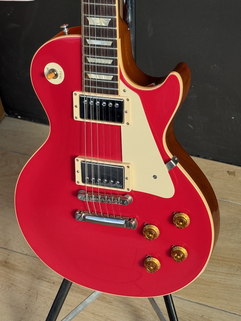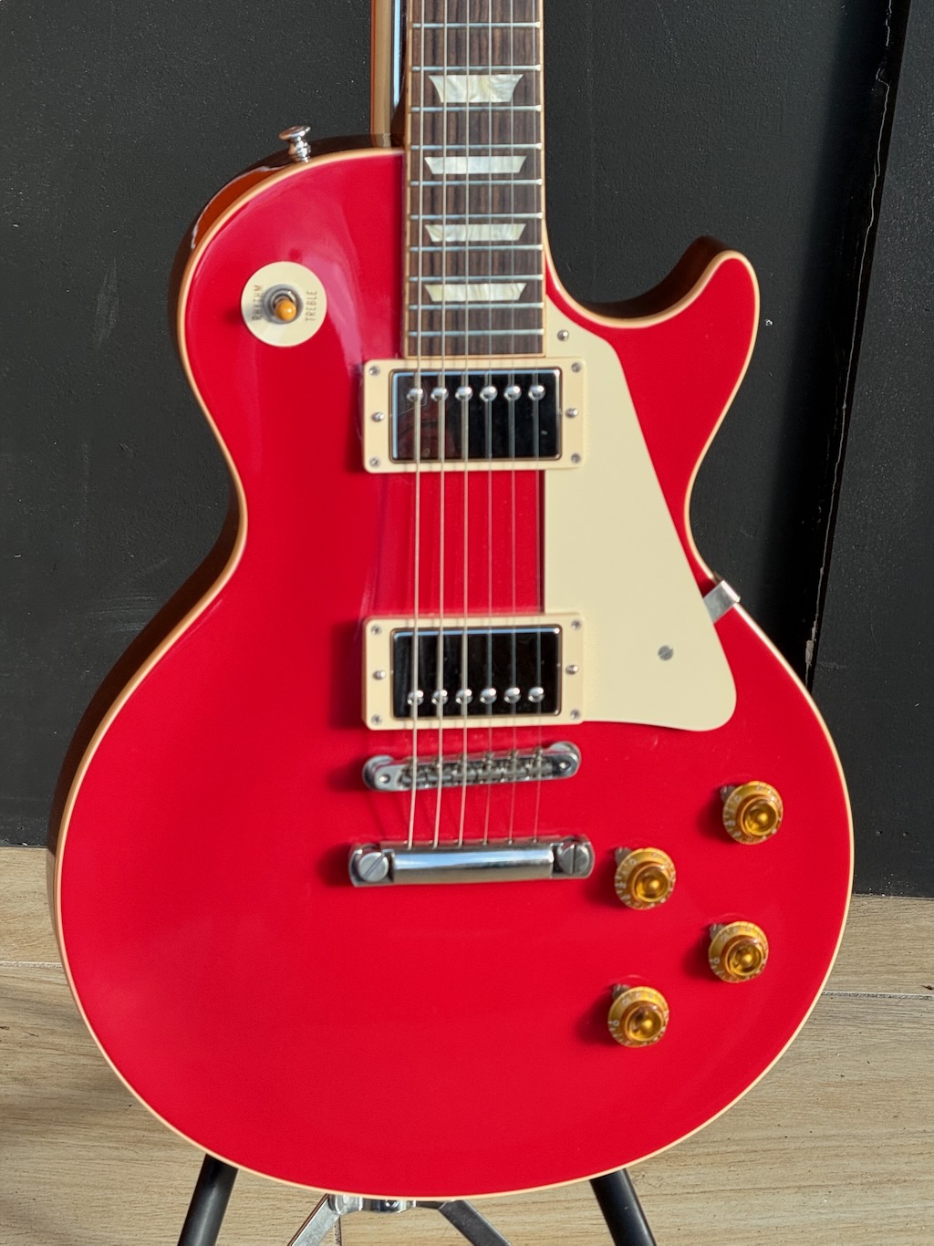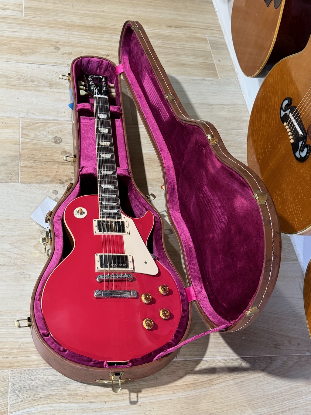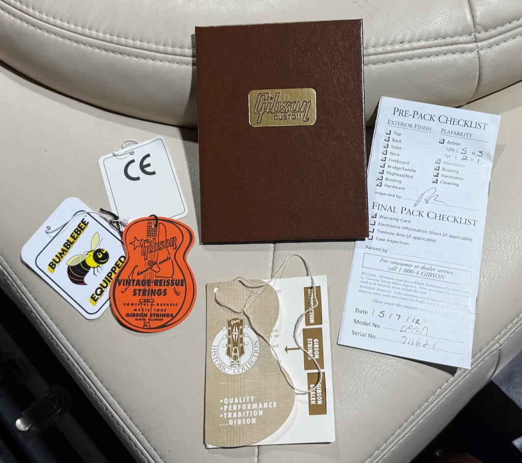 This is a very unusual 2012 Gibson Les Paul LPR-7 w/a killer Cardinal Red finished Maple Top made by the Custom Shop. It’s got all the right ’57 features including a 1 piece mahogany neck & body, 2 PAF Humbuckers & an inked on ’57 Reissue serial #. It’s not the basic model Std. you see for sale but fully made by the best luthiers at Gibson. It’s truly near mint & has a ton of case candy, it’s factory brown tolex COA & inspection paperwork dated to 5/7/12. It’s truly mint & comes in its original brown tolex hard case.