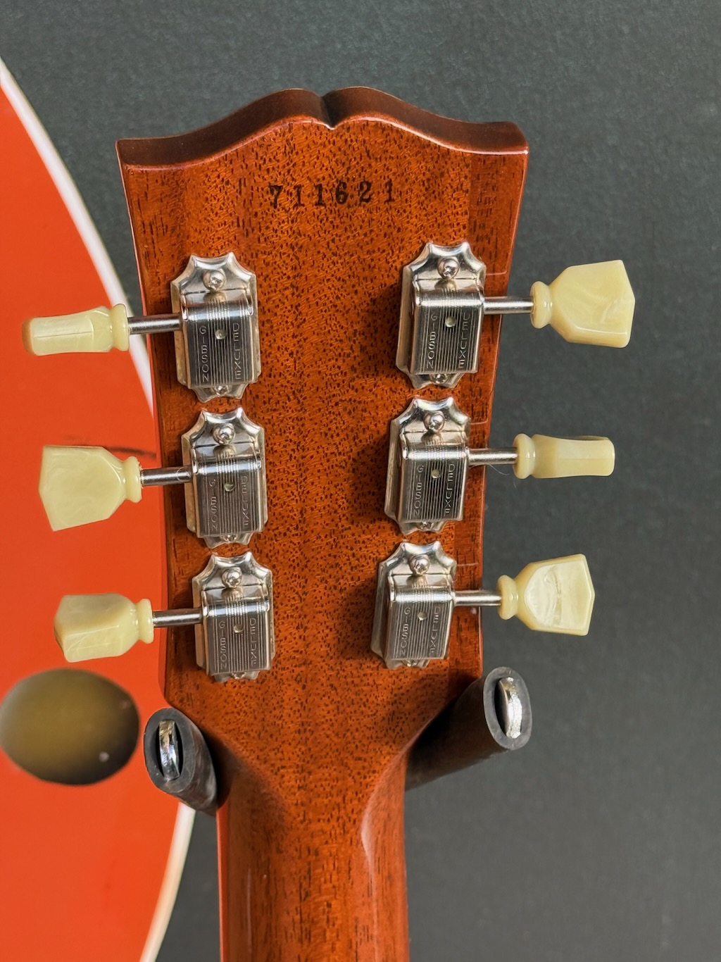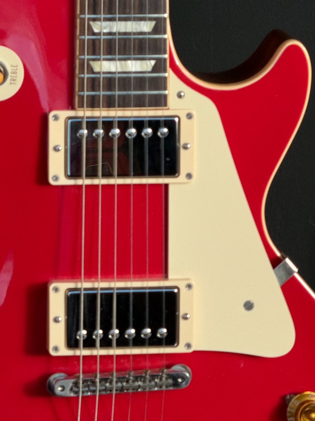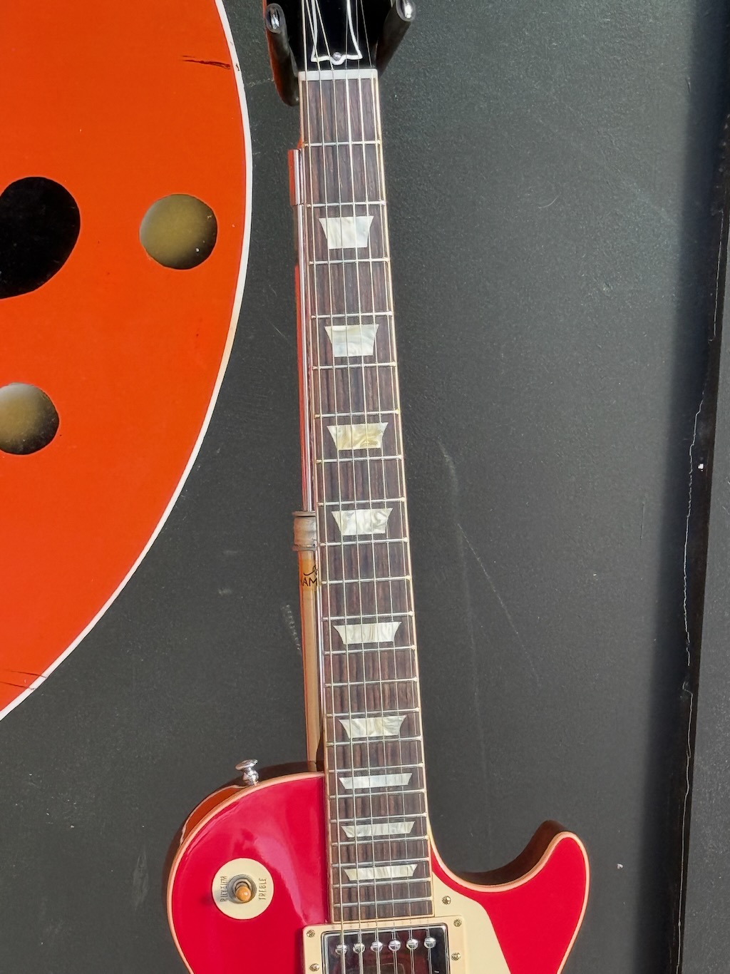 This is a very unusual 2012 Gibson Les Paul LPR-7 w/a killer Cardinal Red finished Maple Top made by the Custom Shop. It’s got all the right ’57 features including a 1 piece mahogany neck & body, 2 PAF Humbuckers & an inked on ’57 Reissue serial #. It’s not the basic model Std. you see for sale but fully made by the best luthiers at Gibson. It’s truly near mint & has a ton of case candy, it’s factory brown tolex COA & inspection paperwork dated to 5/7/12. It’s truly mint & comes in its original brown tolex hard case.
