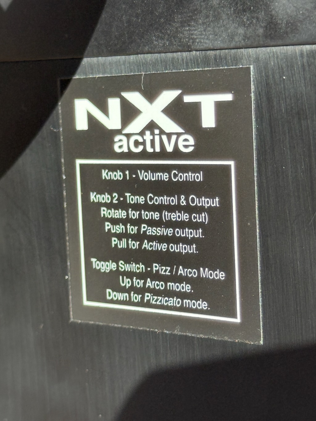- Active Mode: the NXTa connects into any AC outlet for 60 seconds, powering the capacitor-powered active circuit for up to 16 hours of performance time. The instrument can then be plugged straight into any low or high impedance device, no direct box necessary. Since there is no signal loss over the full frequency spectrum of the instrument, the fundamentals of every note remain clear and strong, even with extra-long cables.