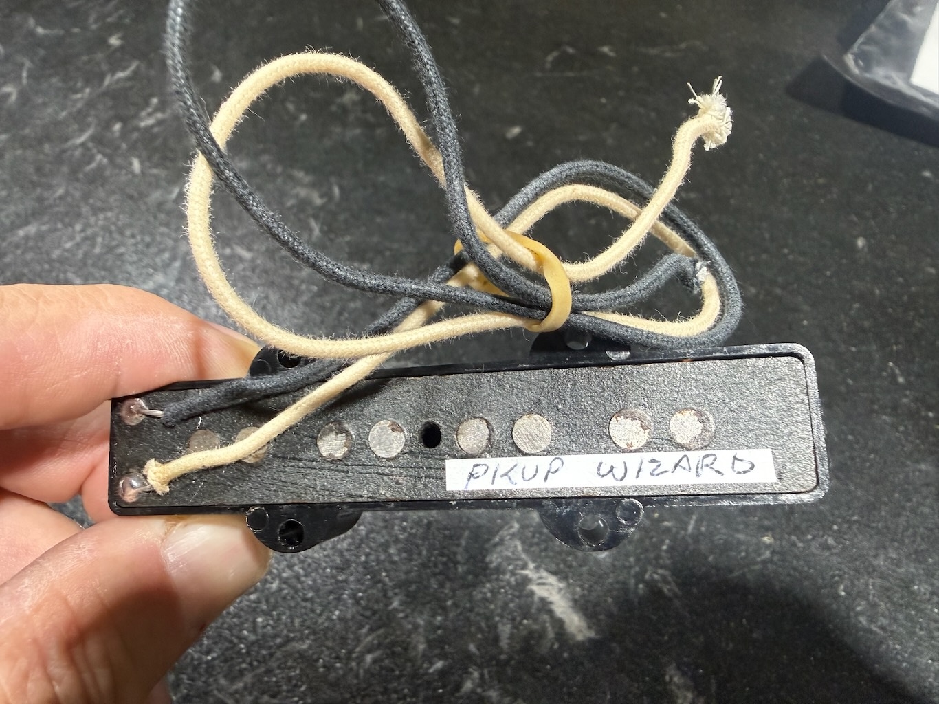 This is a wonderful Jazz Bass that we put together for our personal consumption. It’s what we call the perfect Jazz Bass utilizing a Warmoth neck & body that are an insane mix of top line stuff. Its neck we ordered made from some stellar grainey “Wenge” 1 of the hardest woods on Earth. We also ordered Gold frets to complement the build. Its body is made from the coolest figured Black Korina body w/a 5A flamey Maple Top w/a P-J pickup setup to house some powerful parts. Its P pickup is a Seymour Duncan Bass Lines 1/4 pounder & its J pickup is a “The Pickup Wizard” Vintage Classic 1962 style pickup making its so versatile for any type of tones from funk to smooth jazz. It’s got all Fender parts including its gold tuners, its custom shop gold bridge & a set of 1983 Gold Elite knobs w/its gnarly rubber grip. It’s the straighest neck w/the lowest action we’ve ever experienced ! We are Vintage guys & hard to please. It’s 8 1/2 lbs., near mint & a fantastic buy & comes in a nice hard case.